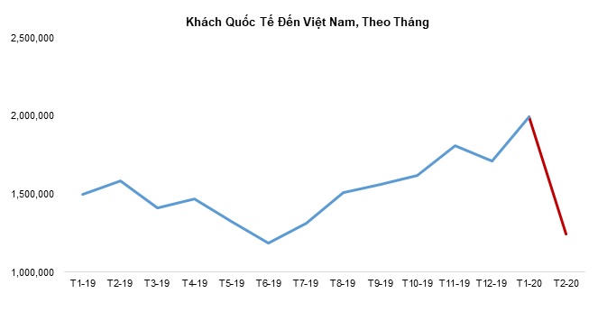 Cũng giống như các quốc gia khác trên thế giới, lượng khách quốc tế đến Việt Nam đã giảm đáng kể trong hai tháng đầu năm. Theo báo cáo mới nhất của Tổng cục Du lịch Việt Nam, lượng khách quốc tế đến nước ta trong tháng 2 giảm 37,7% so với tháng trước, giảm 21,8% so với cùng kỳ năm 2019 và dự kiến sẽ giảm sâu hơn trong những tháng tới.