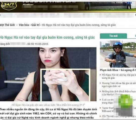 Trước đó Hà Hồ đã gây bất ngờ với giới truyền thông khi đeo chiếc nhẫn có giá trị 21 tỷ đồng trong một buổi gặp gỡ báo chí. Nhưng sau đó cô khẳng định rằng mình “nghèo” nên không có tiền mua “hàng khủng”. Như vậy chiếc nhẫn đắt giá này rất có thể do người yêu tin đồn C.Đ.K tặng cô.