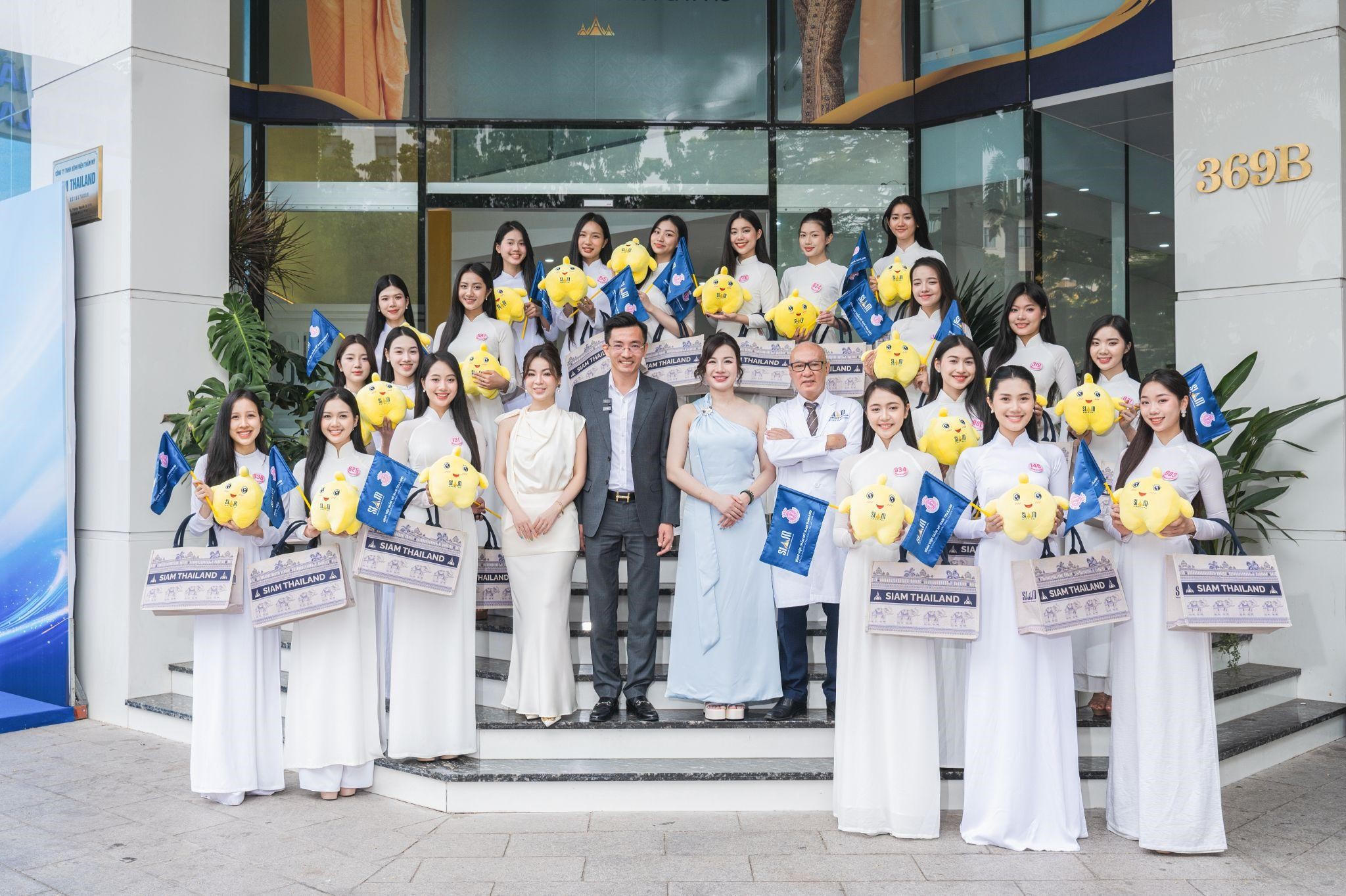 Thí sinh hoa hậu Việt Nam chụp ảnh lưu niệm cùng Ban lãnh đạo và bác sĩ Bệnh viện Thẩm mỹ SIAM Thailand |