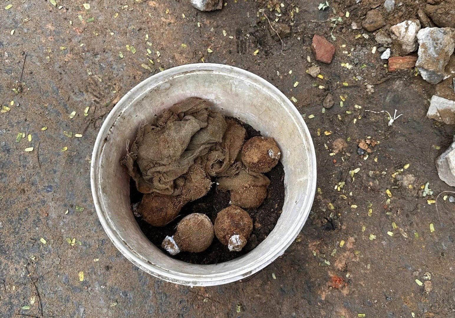 10 quả lựu đạn được phát hiện trong lúc sửa vỉa hè. |