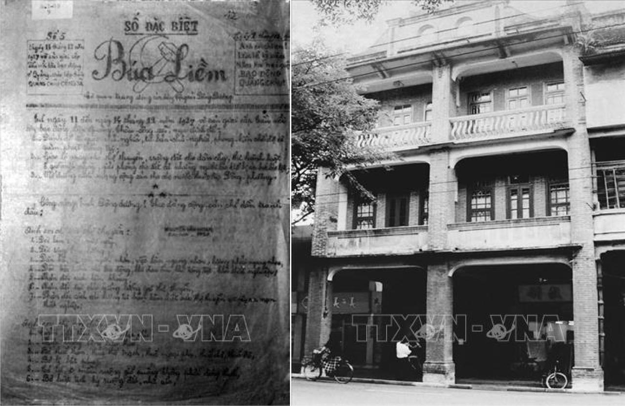 Ảnh trái: Đáp ứng những đòi hỏi của thực tiễn cách mạng, ngày 17-6-1929, Kỳ Bộ Bắc Kỳ Hội Việt Nam cách mạng Thanh niên đã thành lập Đông Dương Cộng sản Đảng tại Hà Nội. Trong ảnh: Báo Búa Liềm, cơ quan Trung ương của Đông Dương Cộng sản Đảng, số 5, ngày 11-12-1929.