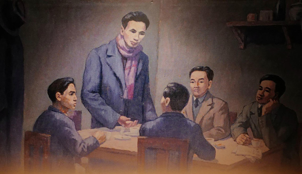 Hội nghị thành lập Đảng Cộng sản Việt Nam ngày 3-2-1930. Ảnh chụp lại tranh của họa sĩ Phi Hoanh tại Bảo tàng Lịch sử Quốc gia