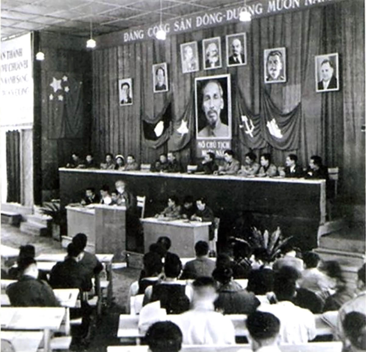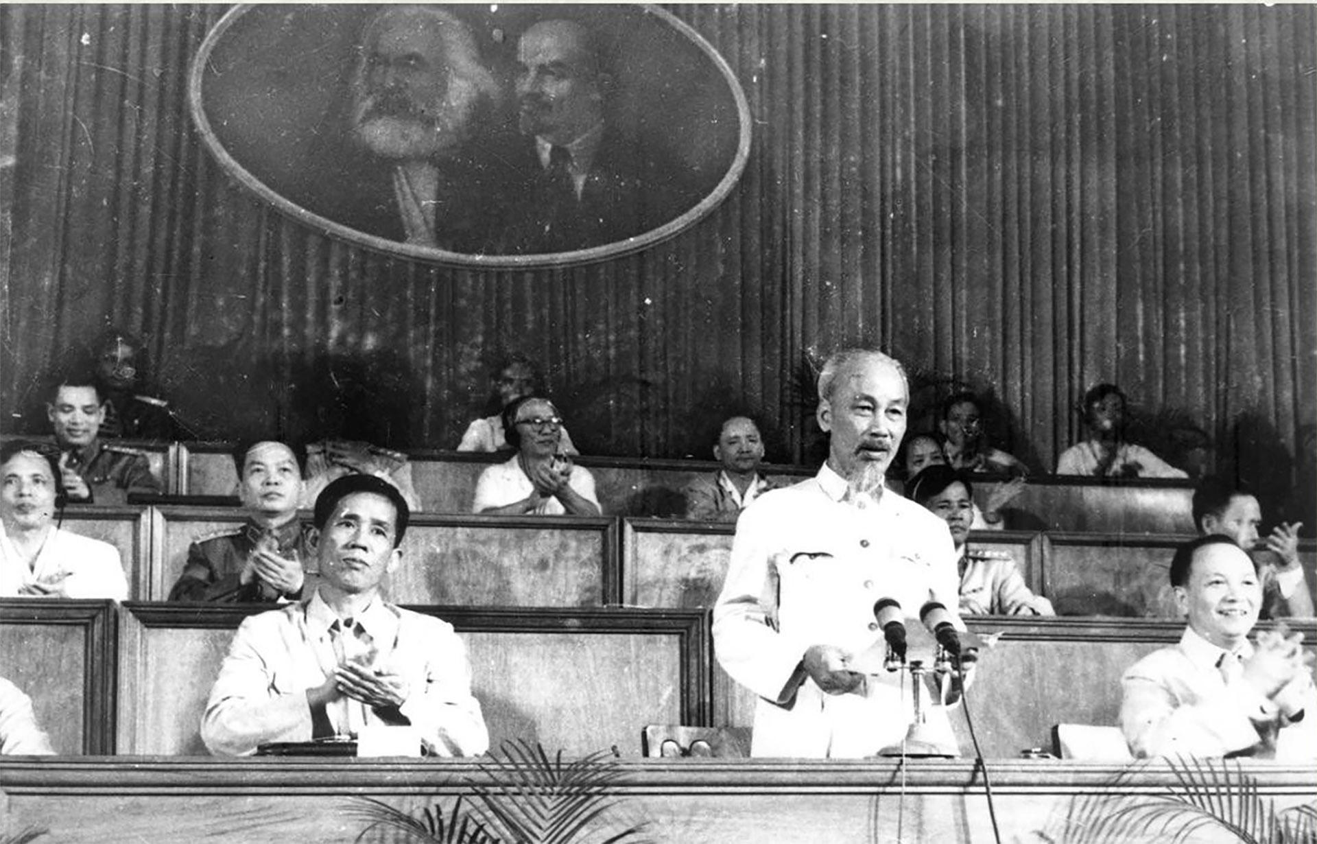 Chủ tịch Hồ Chí Minh đọc diễn văn tại Đại hội lần thứ IIcủa Đảng ở căn cứ địa Tuyên Quang. Ảnh: Tư liệu
