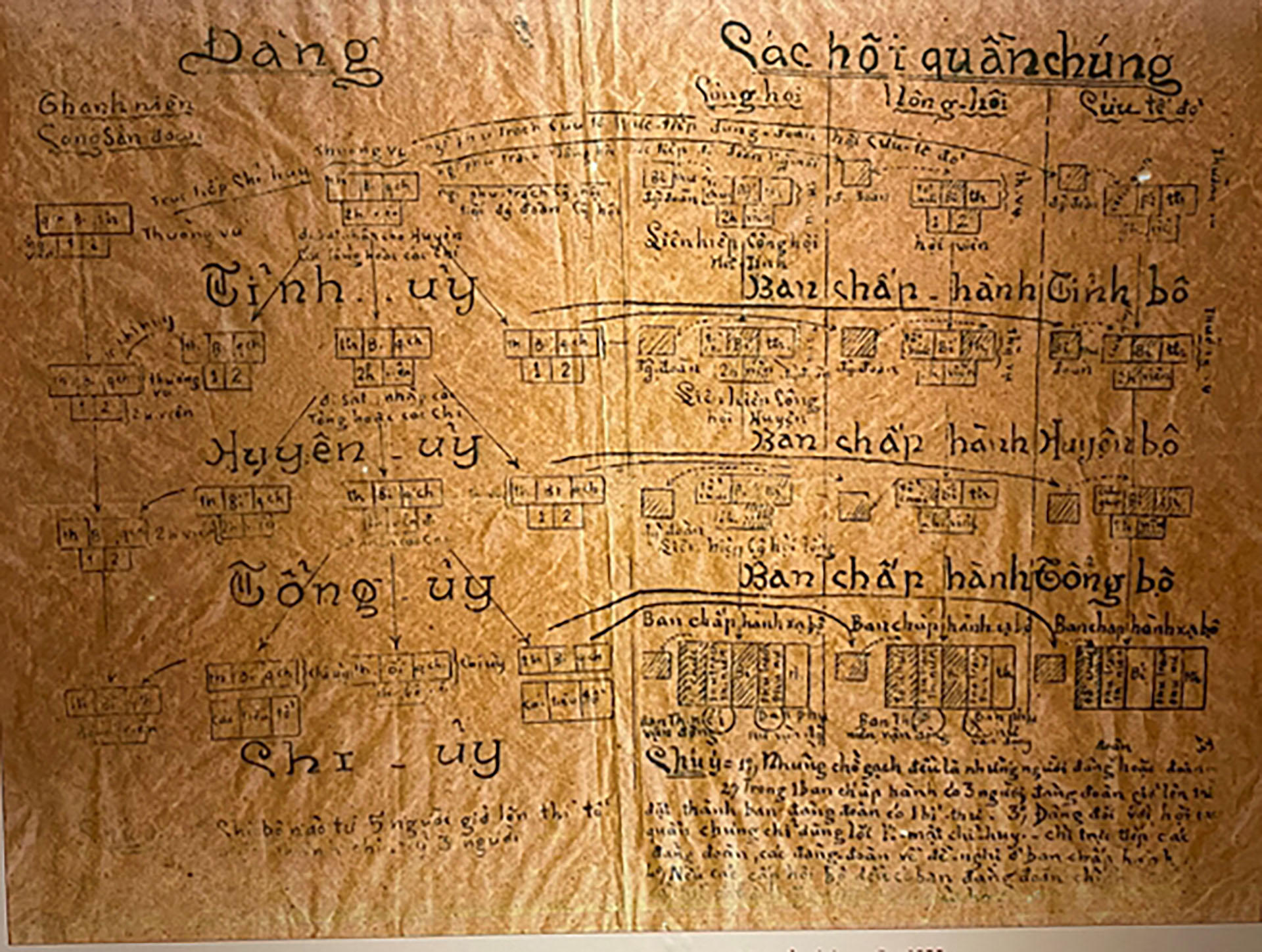 Sơ đồ tổ chức quần chúng của Đảng Cộng sản Việt Nam và các hội quần chúng năm 1930. Ảnh: Bảo tàng Lịch sử quốc gia