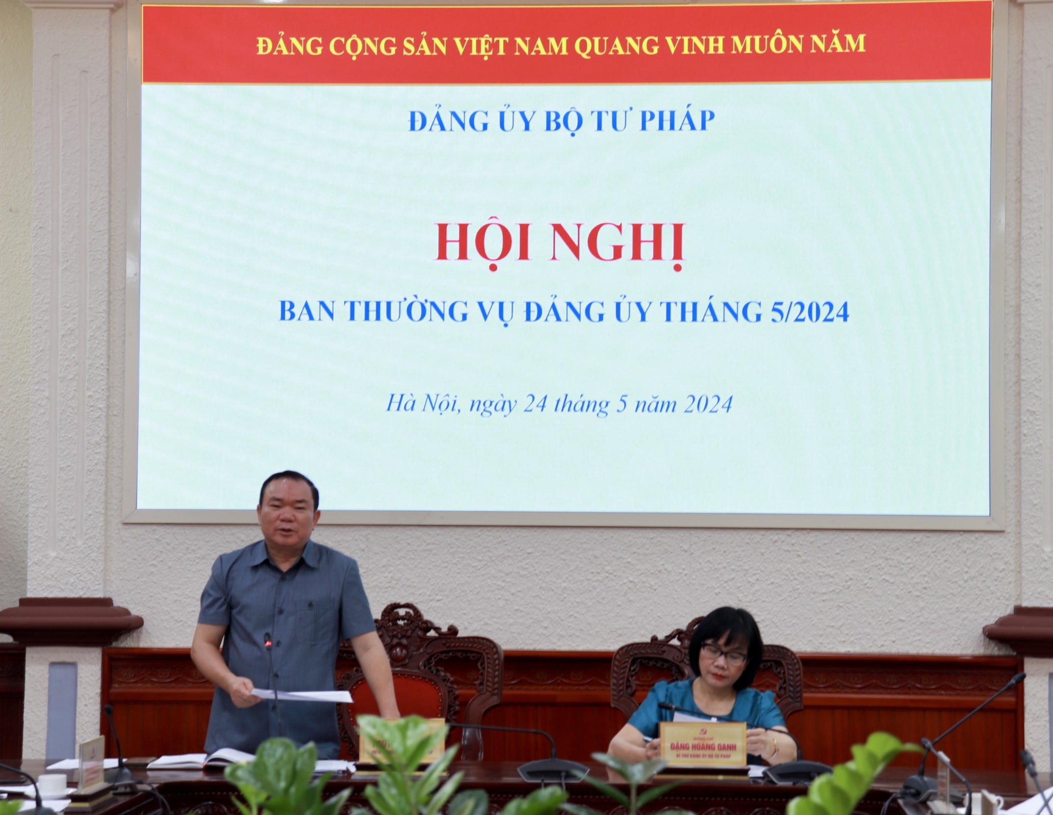 Theo báo cáo tại Hội nghị, trong tháng 5/2024, Đảng ủy Bộ Tư pháp đã bám sát các nhiệm vụ trọng tâm trong Chương trình công tác năm 2024 của Đảng ủy Bộ; tập trung lãnh đạo, chỉ đạo các đảng bộ, chi bộ trực thuộc triển khai đồng bộ và toàn diện các mặt công tác đảng và đạt nhiều kết quả nổi bật. Trong đó, phối hợp với Ban cán sự đảng, Lãnh đạo Bộ chỉ đạo triển khai và hoàn thành các nhiệm vụ như: tham mưu Chính Phủ hoàn thiện, chỉnh lý và trình Quốc hội cho ý kiến để thông qua 10 dự án luật, 3 nghị quyết quy phạm pháp luật và cho ý kiến về 11 dự án luật khác tại kỳ họp thứ 7, Quốc hội khóa XV; tổ chức tổng kết thi hành Luật Giám định tư pháp và Đề án tiếp tục đổi mới và nâng cao hiệu quả giám định Tư pháp và tiếp tục chuẩn bị, hoàn thiện các đề nghị xây dựng, dự án luật được giao chủ trì soạn thảo.