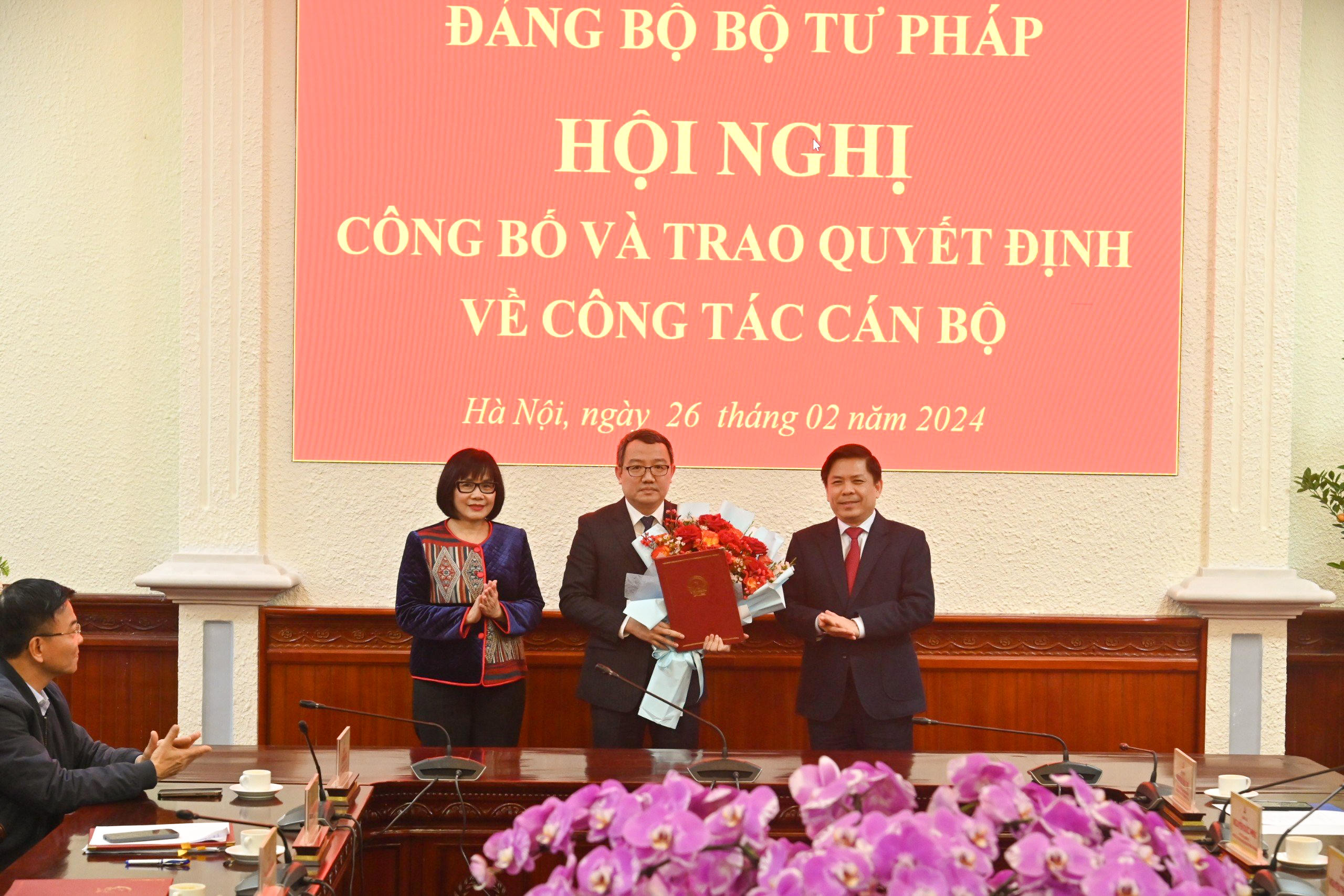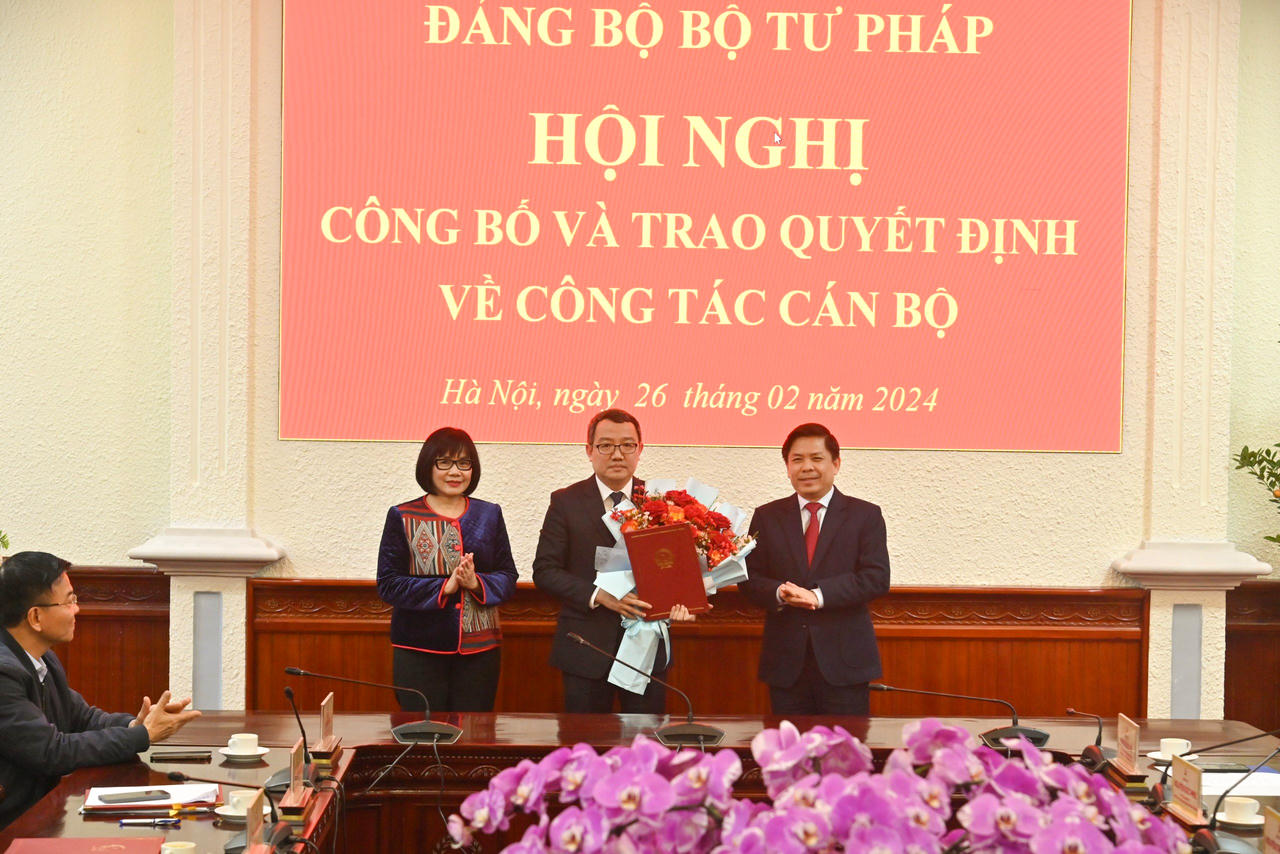 | Thứ trưởng Bộ Tư pháp Trần Tiến Dũng (đứng giữa) được chỉ định giữ chức Phó Bí thư Đảng uỷ Bộ Tư pháp |