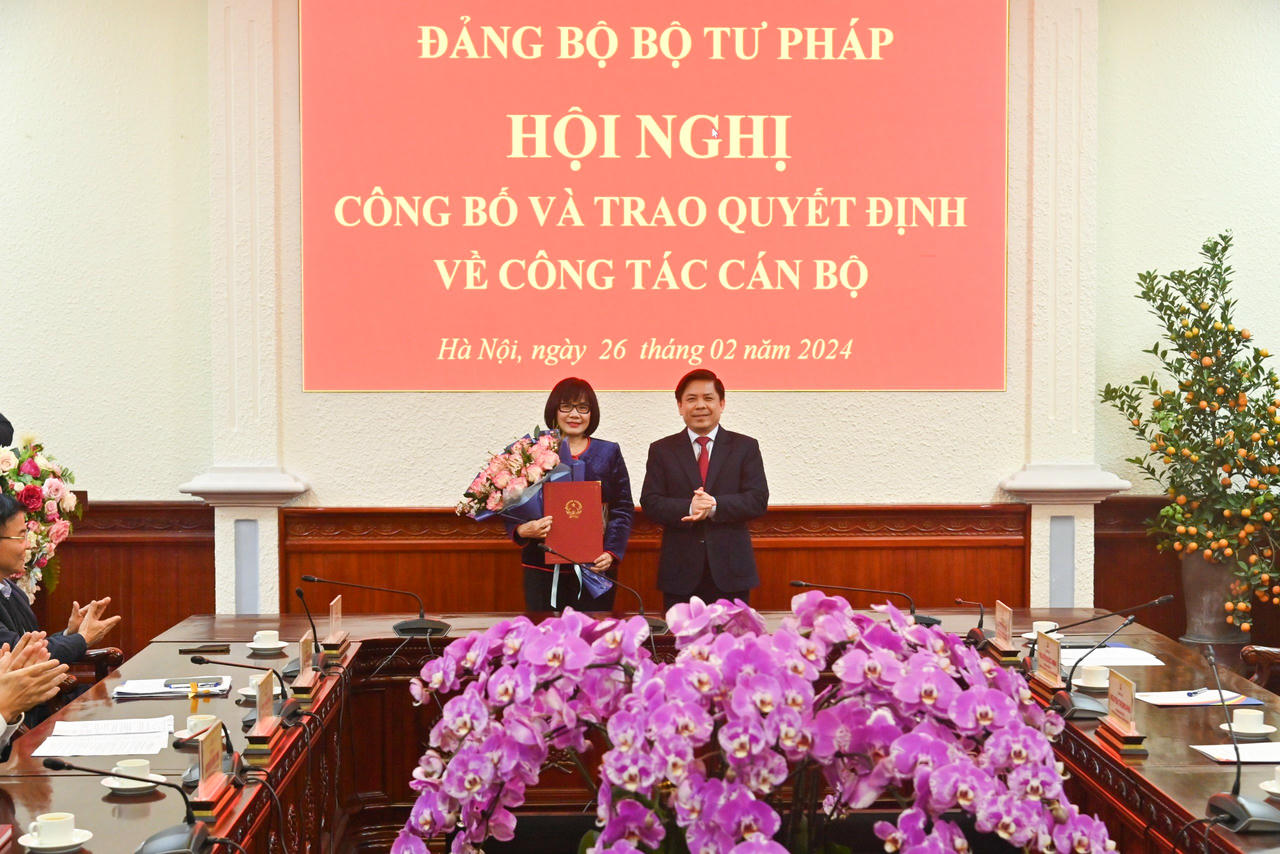 Theo đó, trao Quyết định chỉ định tham gia Ban Chấp hành Đảng bộ Khối các cơ quan Trung ương đối với đồng chí Đặng Hoàng Oanh, Bí thư Đảng uỷ Bộ, Thứ trưởng Bộ Tư pháp; Quyết định chỉ định Uỷ viên Ban Chấp hành, Ban Thường vụ, giữ chức Phó Bí thư Đảng uỷ Bộ Tư pháp đối với đồng chí Trần Tiến Dũng, Uỷ viên Ban cán sự Đảng, Thứ trưởng Bộ Tư pháp; Quyết định chuẩn y bổ sung Uỷ viên Ban Thường vụ Đảng uỷ Bộ Tư pháp đối với đồng chí Hồ Quang Huy, Uỷ viên BCH Đảng bộ, Cục trưởng Cục Kiểm tra văn bản quy phạm pháp luật nhiệm kỳ 2020 – 2025.