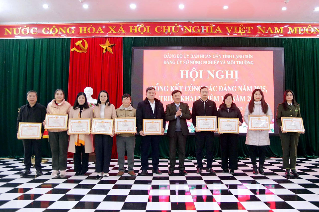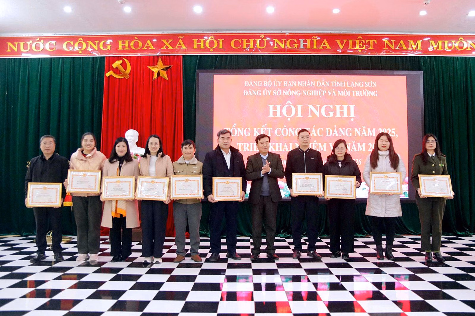 Nhân dịp này, lãnh đạo Đảng ủy Sở Nông nghiệp và Môi trường biểu dương, tặng Giấy khen cho 01 Chi bộ và 25 đảng viên hoàn thành xuất sắc nhiệm vụ năm 2025.