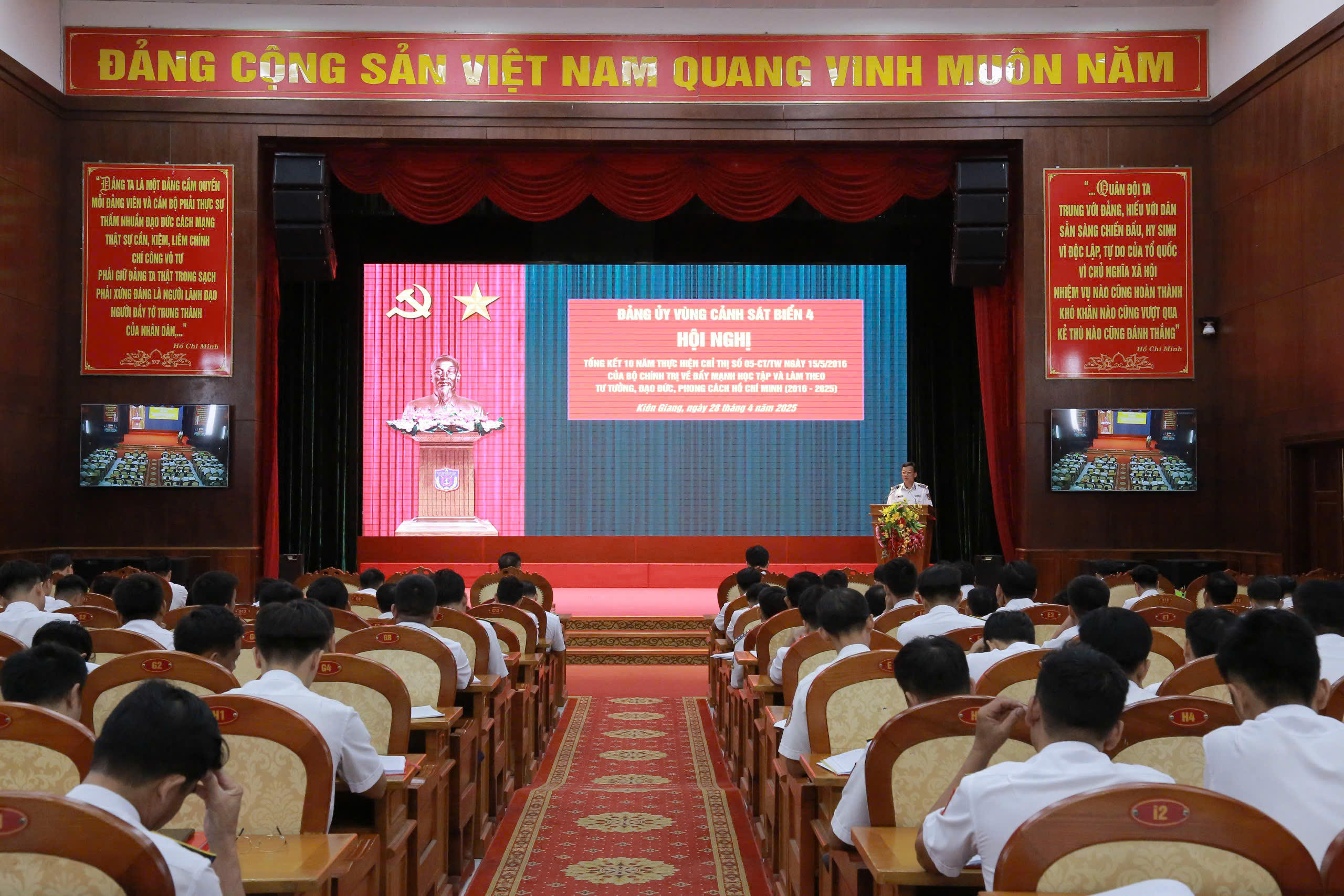 (PLVN) - Ngày 28/4/2025, tại thành phố Phú Quốc, tỉnh Kiên Giang, Đảng ủy Vùng Cảnh sát biển 4 tổ chức Tổng kết 10 năm thực hiện Chỉ thị số 05-CT/TW ngày 15/5/2016 của Bộ Chính trị về đẩy mạnh học tập và làm theo tư tưởng, đạo đức, phong cách Hồ Chí Minh (2016 - 2025).