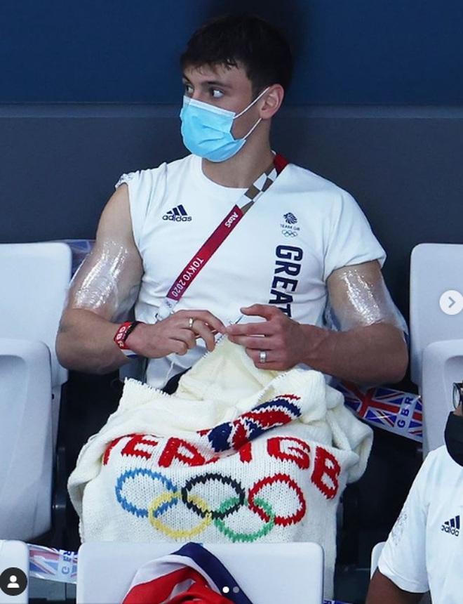 Không chỉ nổi tiếng bởi đẹp trai và thân hình nóng bỏng, Tom Daley còn khiến fans ngưỡng mộ bởi khả năng đan lát thuần thục. Mới đây, cư dân mạng xôn xao khi thấy Tom Daley tới xem các vận động viên khác thi đấu tại Thế vận hội Tokyo và tranh thủ ngồi đan len.