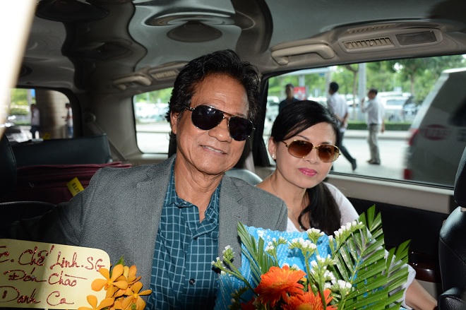 (PLO) -Nam danh ca cùng vợ rạng rỡ xuất hiện tại sân bay Tân Sơn Nhất (TP HCM) sau chuyến bay dài từ Mỹ về chuẩn bị cho liveshow Chế Linh tại Trung tâm Hội nghị Quốc Gia Mỹ Đình vào ngày 28/10 tới đây. Các fans chờ đón danh ca từ rất sớm và đưa ông về TP HCM nghỉ ngơi trước khi bay ra Hà Nội.