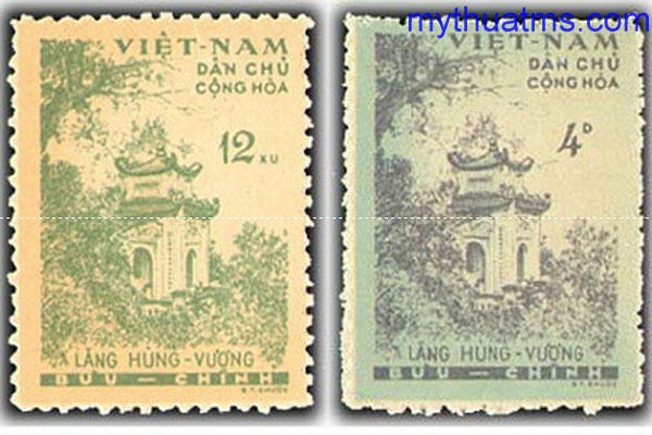 Bộ tem Lăng Hùng Vương do họa sĩ Bùi Trang Chước thiết kế là bộ tem bưu chính cách mạng đầu tiên về chủ đề giỗ Tổ Hùng Vương. (ảnh tư liệu) |