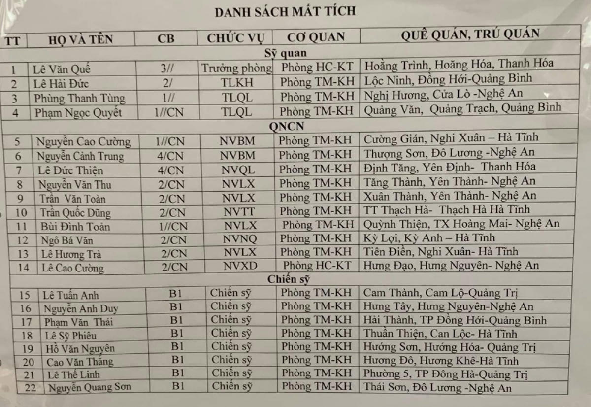 Danh sách 12 cán bộ, chiến sĩ Đoàn 337 đã tìm thấy thi thể