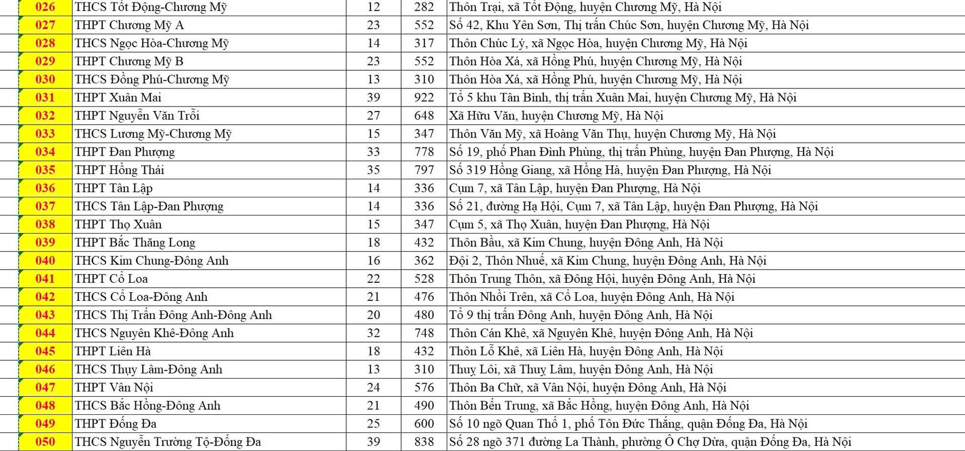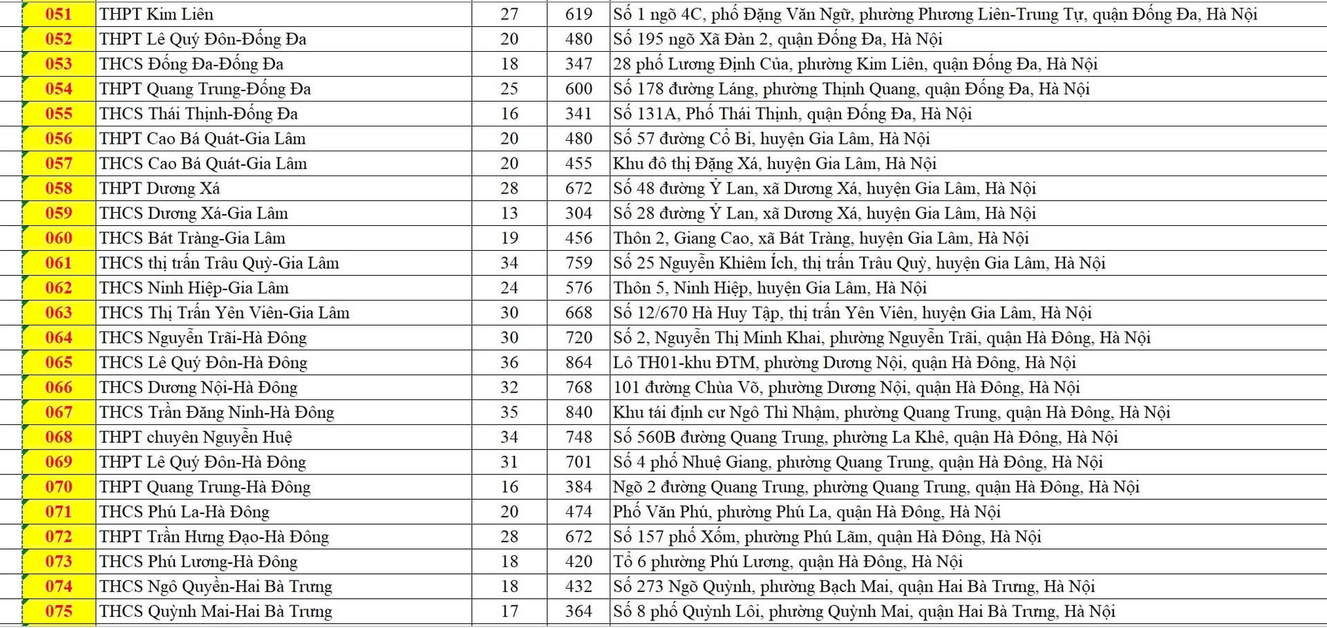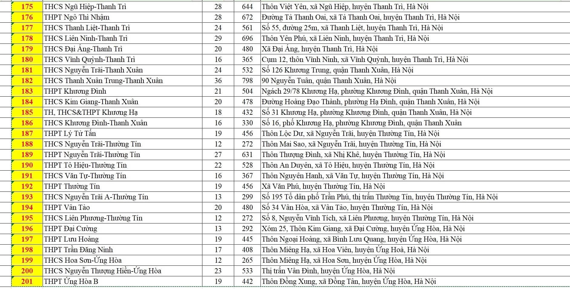 Danh sách các điểm thi tuyển sinh vào lớp 10 công lập không chuyên của Hà Nội cụ thể như sau: