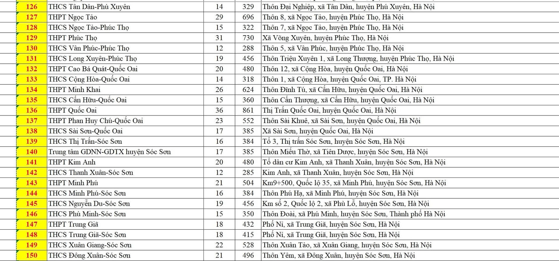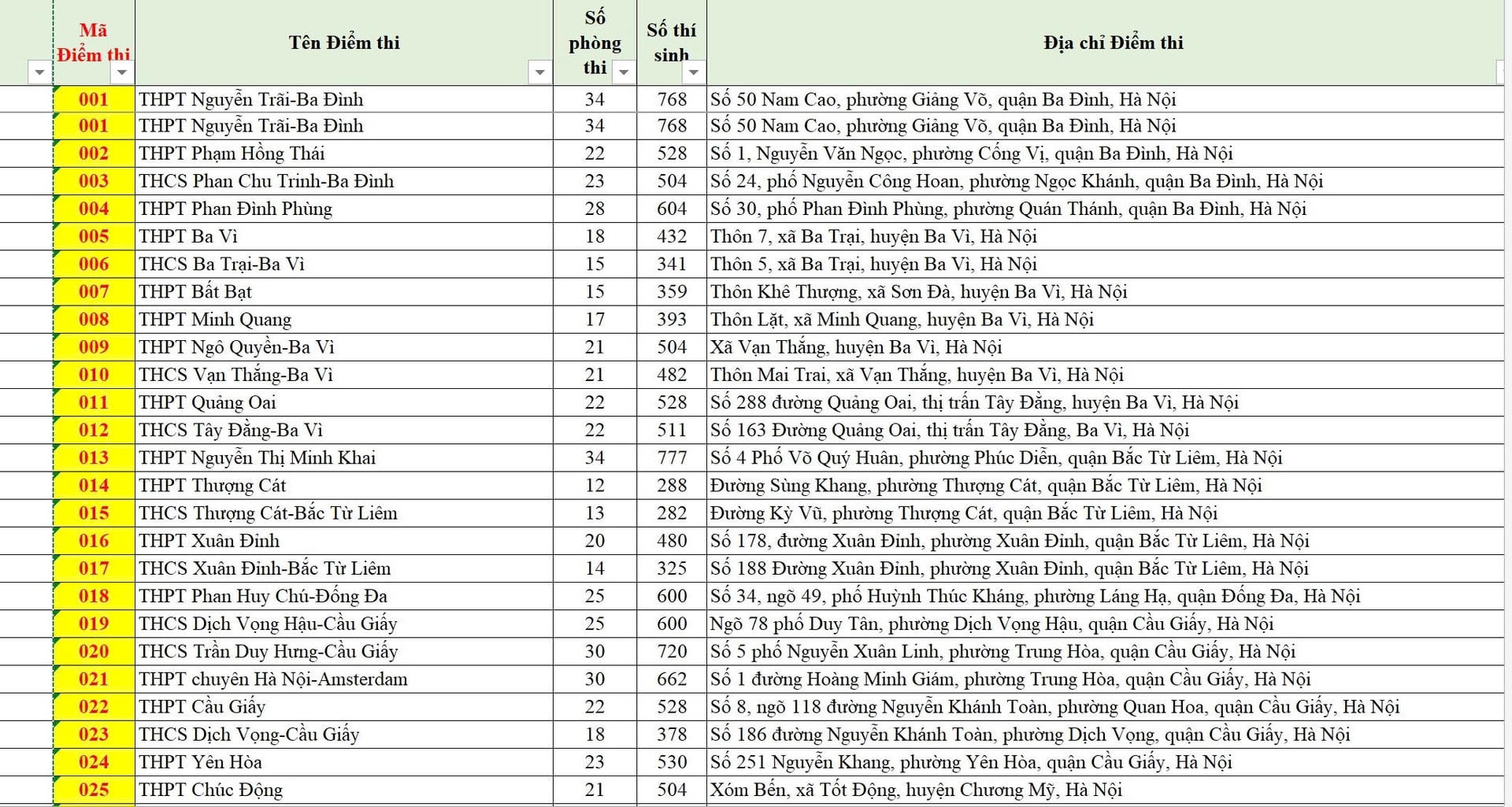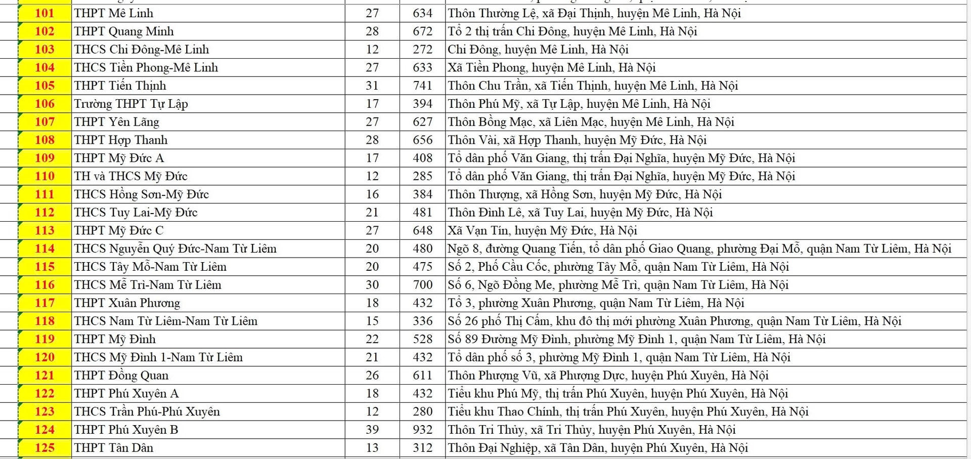 Danh sách các điểm thi tuyển sinh vào lớp 10 công lập không chuyên của Hà Nội cụ thể như sau: