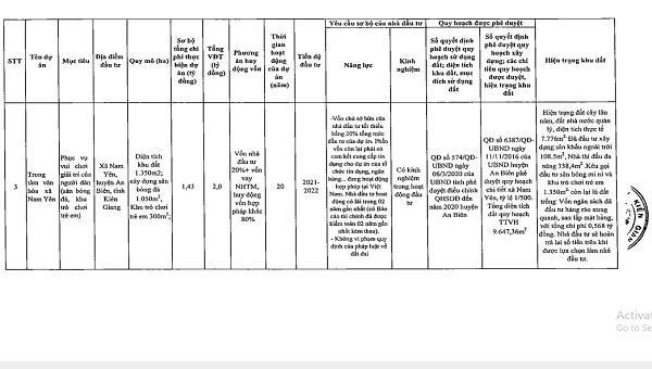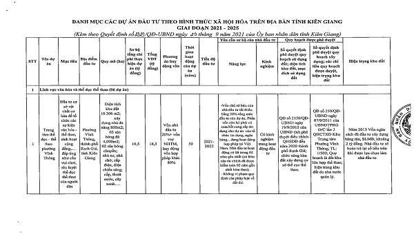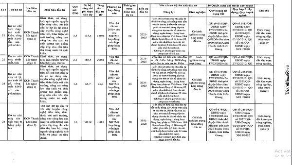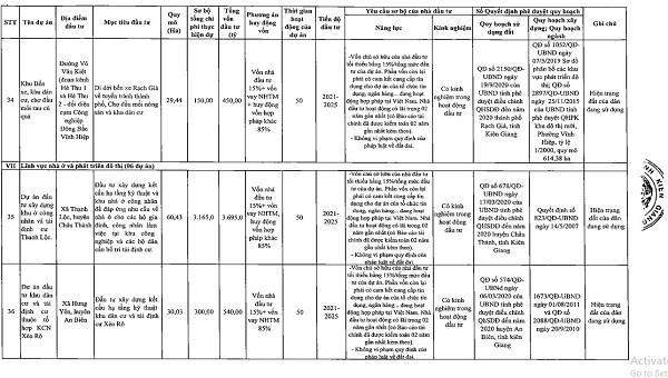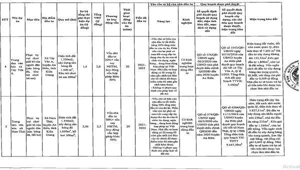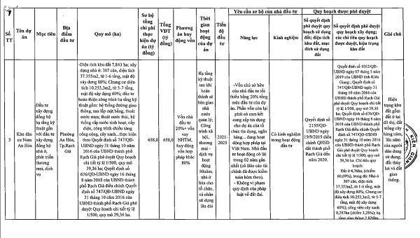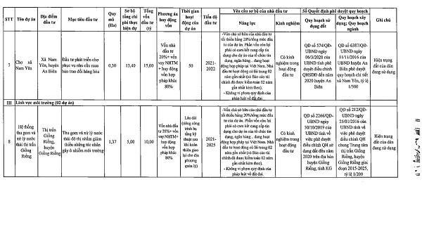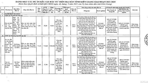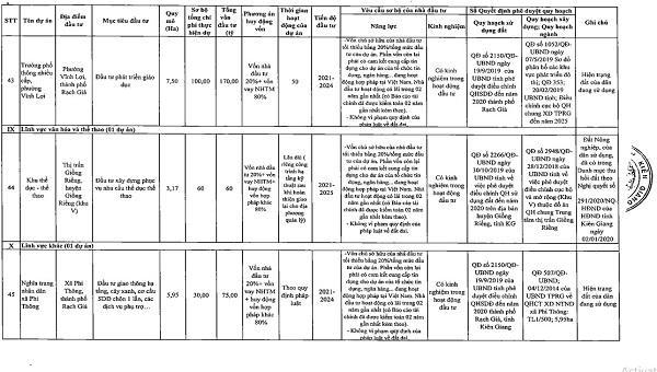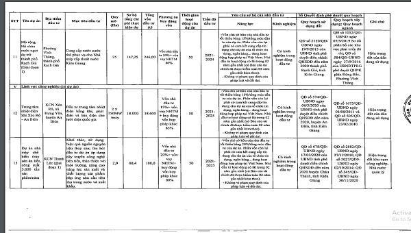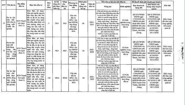 Danh sách chi tiết 55 dự án được UBND tỉnh Kiên Giang kêu gọi đầu tư: