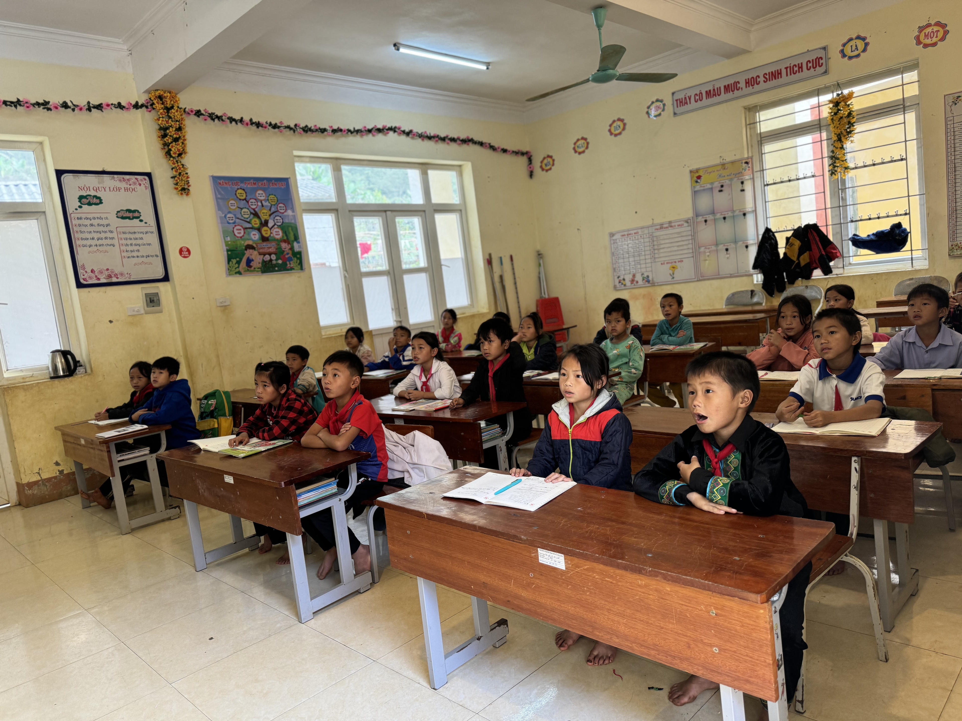 Các em học sinh chăm chú nghe giảng trong tiết học của cô Lương thị Huệ. Nguồn ảnh Mỵ Châu |