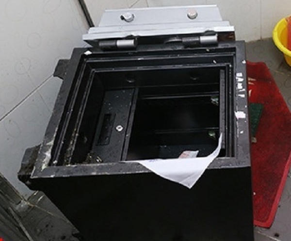 Hai chiếc két sắt có khối lượng gần 50kg đặt trong phòng kế toán nhà sách bị kéo vào trong nhà vệ sinh, trong đó một chiếc đã bị phá tung, tất cả tài sản bên trong mất sạch. Chiếc còn lại có dấu hiệu bị cưa, cạy phá nhưng khóa không bung nên tài sản vẫn còn nguyên vẹn.