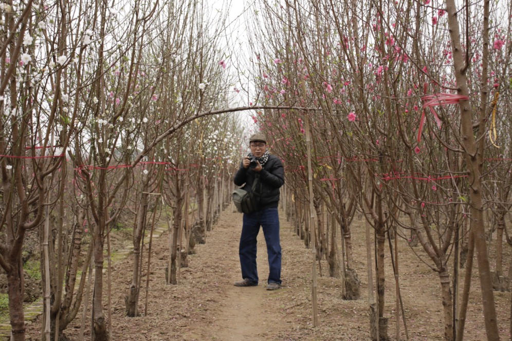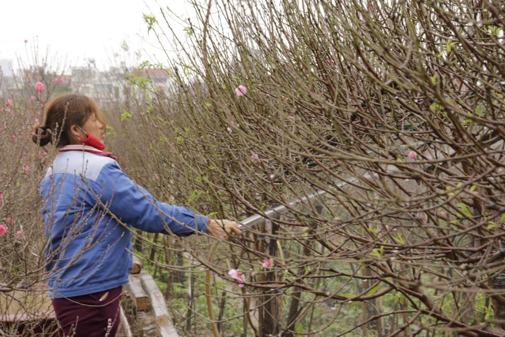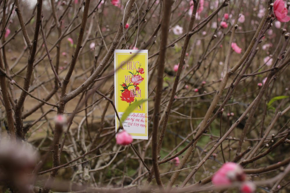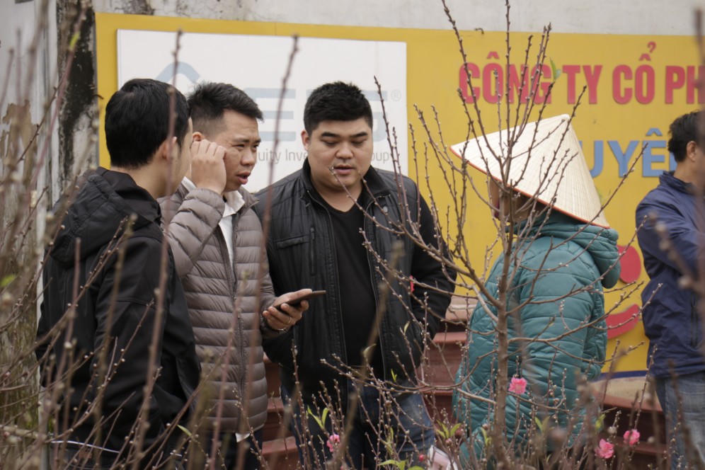 Vựa đào Nhật Tân đang trong giai đoạn cao điểm trước Tết Kỷ Hợi. Không khí mua bán rất sôi động, mỗi ngày chủ vườn phải đón hàng nghìn lượt khách đến xem và mua đào