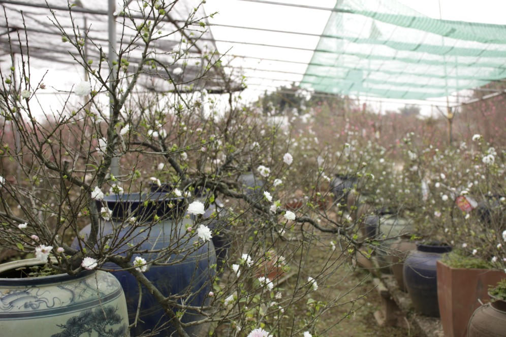 Bên cạnh đào, một số hộ cũng trồng thêm mai trắng, quất cảnh để phục vụ nhu cầu khách hàng