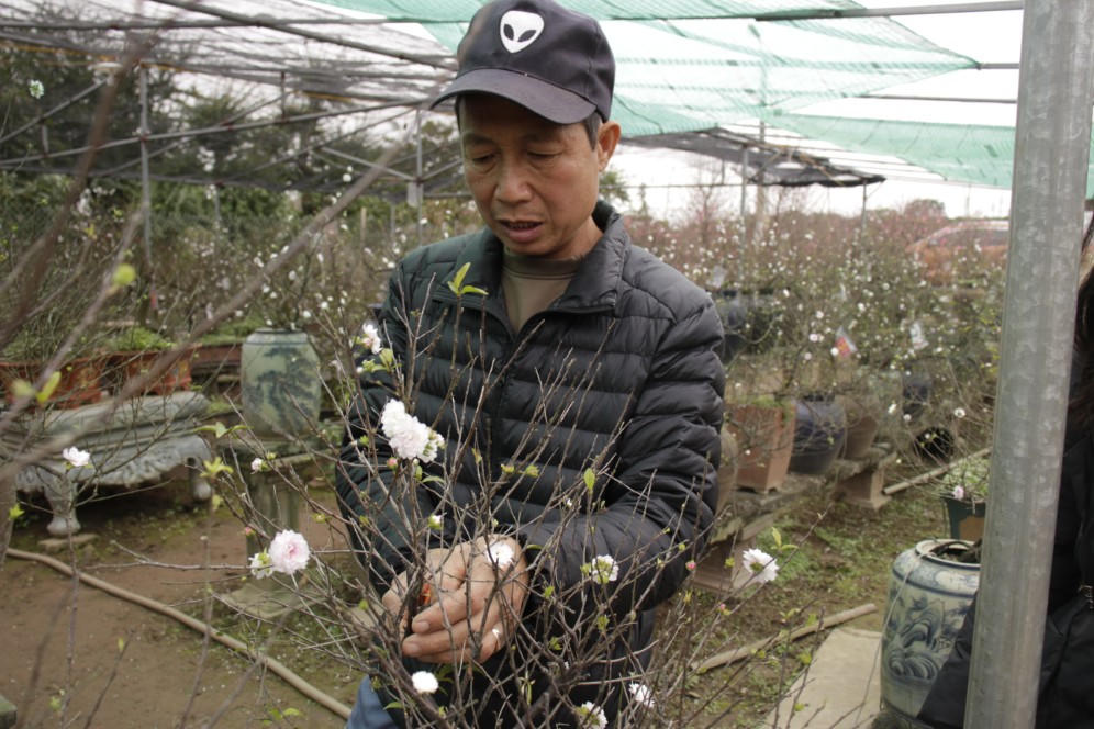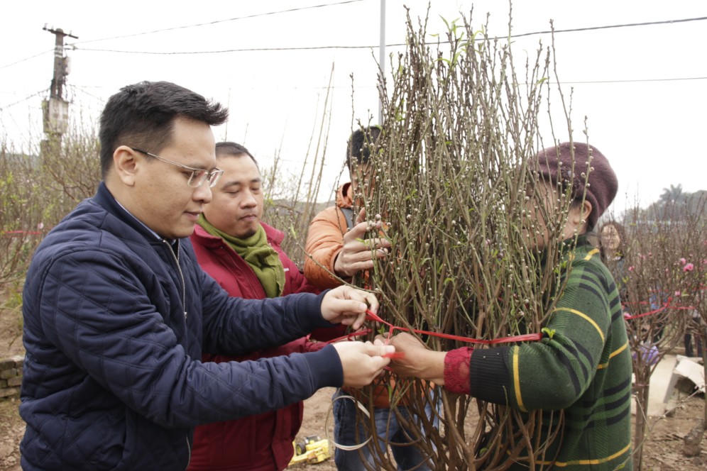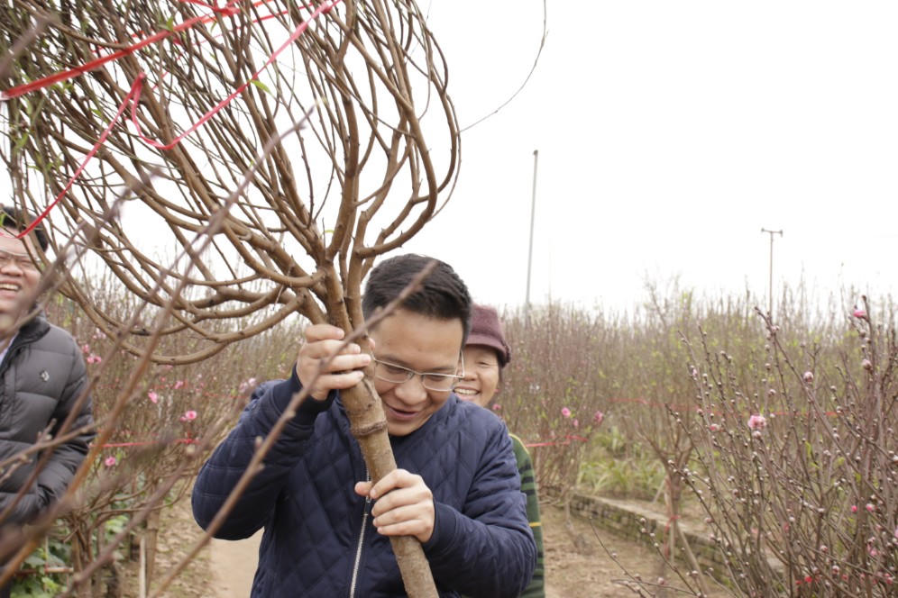 Trên tay cành đào giá 500.000 nghìn, anh Hội, quê tại TP.HCM phấn khởi: “Đào Nhật Tân đẹp, nổi tiếng đã lâu nên năm nay tôi nhờ bạn dẫn lên vườn tìm mua. Giá tuy cao nhưng tôi thấy khá ưng ý. Ở trong miền Nam chỉ chơi mai thôi, mình mua cành đào về chưng Tết cho độc
