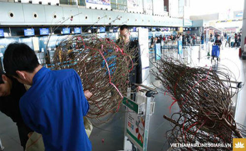 Cành đào, cành mai cần được buộc thành bó, có bao bọc ngoài, kích thước không quá 150x40x40cm. Mỗi hành khách chỉ được mang theo 01 bó (không quá 02 cành) dưới dạng hành lý ký gửi theo chuyến bay với điều kiện hành khách phải đăng ký trước chuyến bay ít nhất 03 tiếng và đã được xác nhận chỗ.