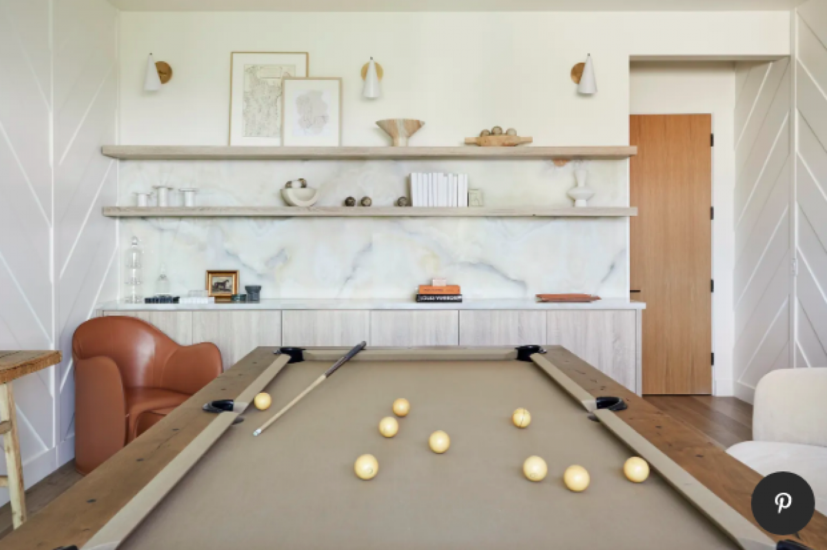 Phòng thư giãn với bàn bia được trang trí đẹp như một tác phảm nghệ thuật.