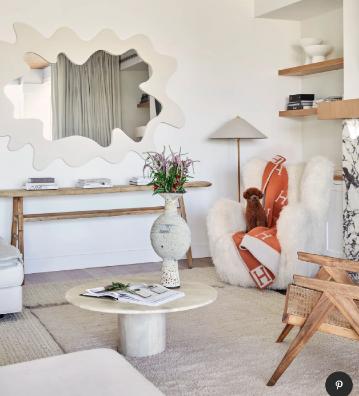 Người đẹp rất chịu chơi khi đầu tư toàn món nội thất đắt đỏ: ghế thư giãn từ thương hiệu CB2, gương của hãng Hannah Polskin mirror, bàn cà phê của L.A.’s Big Daddy’s Antiques.