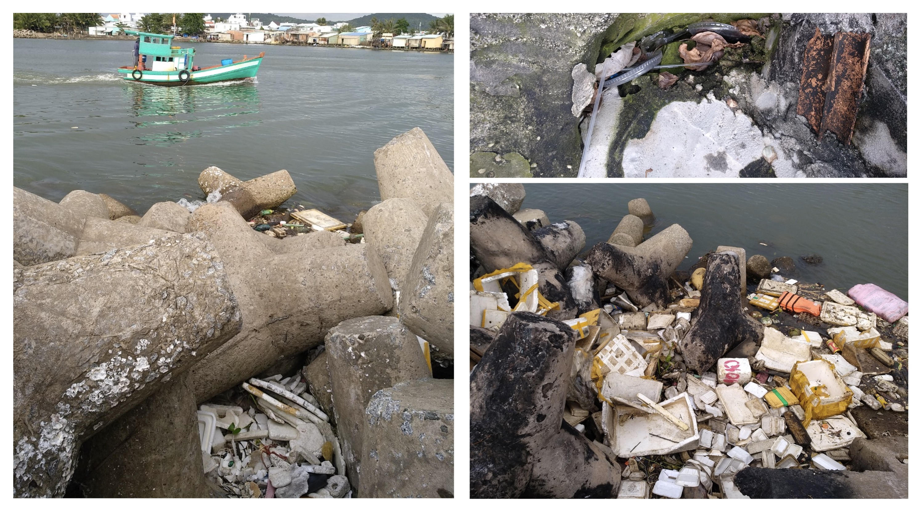 Đi dọc các con đường trên đảo, cũng xuất hiện hình ảnh rác thải xuất hiện ngổn ngang ở ven đường, ven sông, ven chợ, trước nhà dân,…, phần lớn trong đó là rác thải nhựa.