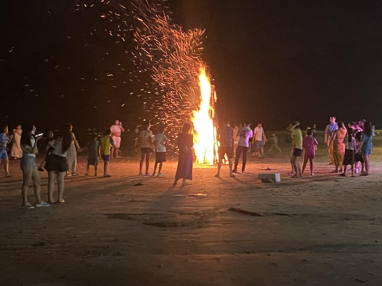 | Du khách tham gia hoạt động đốt lửa trại tại bãi biển. Ảnh: QH |