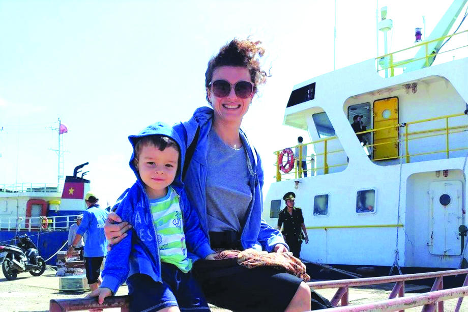 Một du khách Nga cùng con trai đến đảo Phú Quý tham quan, du lịch. (Ảnh: Đức Huynh) |