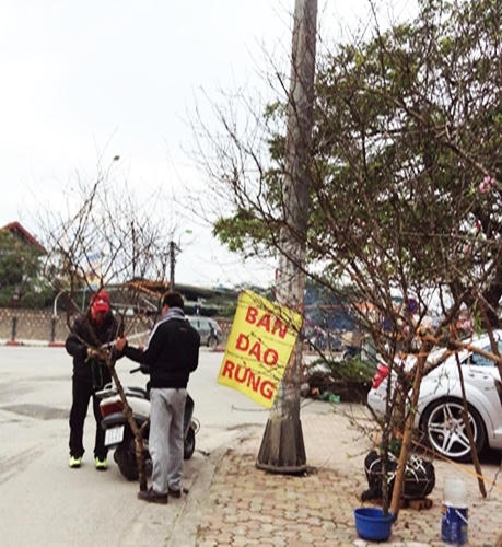 Cũng có những cành đào tại Hưng Yên, Nhật Tân bị phá tán đem bán như cành đào rừng