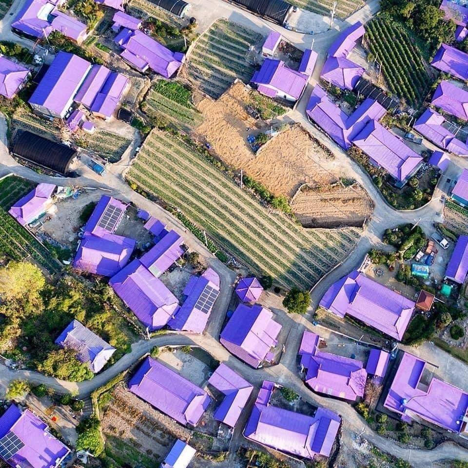 Đảo tím còn gây ấn tượng bởi những công trình màu tím (Ảnh: Purple Island) |