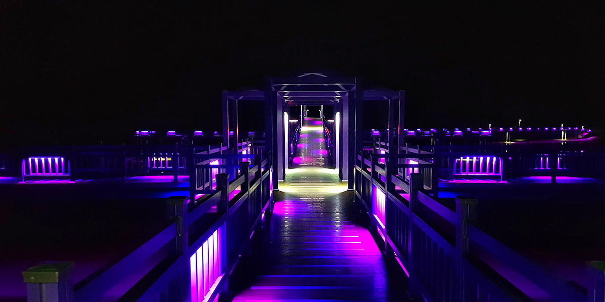 Khi màn đêm buông xuống, cây cầu sẽ được thắp sáng tạo nên không gian huyền ảo, lung linh. (Ảnh: Purple Island) |