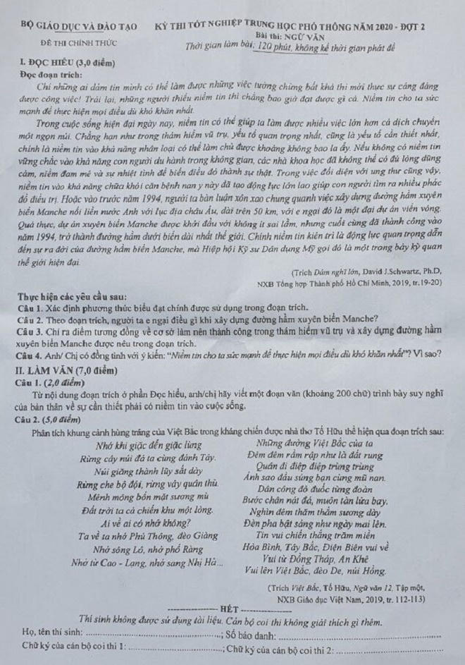 Dưới đây là đề thi tốt nghiệp THPT môn Ngữ văn đợt 2