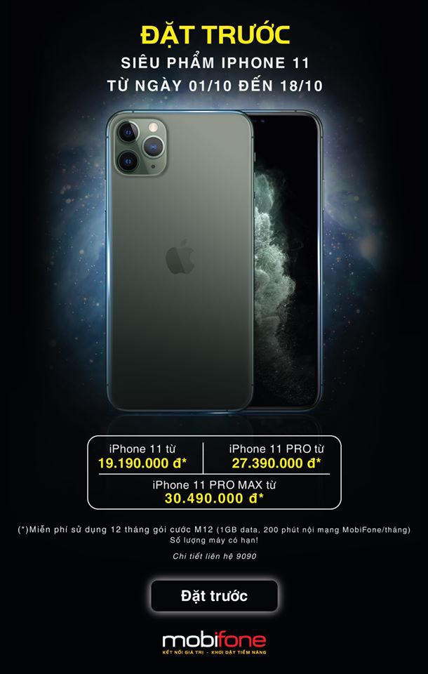 Chính vì thế, thông tin “từ 1/10 – 18/10/2019, MobiFone chính thức nhận đặt cọc cho 3 dòng điện thoại Apple mới ra mắt trên toàn bộ hệ thống cửa hàng của nhà mạng trên toàn quốc, chỉ với mức cọc 1.000.000 đồng/máy, quý khách hàng có thể sở hữu siêu phẩm với mức giá ưu đãi, rẻ hơn thị trường, đặc biệt còn được tặng kèm gói cước ưu đãi MobiFone với 200 phút thoại nội mạng MobiFone, 1 GB data truy cập Internet/ tháng trong 12 tháng” đã khiến cộng đồng yêu thích iPhone “phát sốt”.