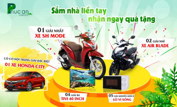 Đây là chương trình ưu đãi lớn nhất Tran Anh Group dành tặng các cư dân tương lai của Phúc An Garden. Theo đó, khách hàng quan tâm, mua đất nền nhà phố Phúc An Garden việc nhận chiết khấu hấp dẫn trong buổi lễ, còn được tham gia chương trình bốc thăm may mắn, có cơ hội nhận những phần quà giá trị gồm: ô tô Honda City, xe SH Mode, xe AirBlade, Tivi Samsung 40 inch cùng nhiều giải giá trị khác.