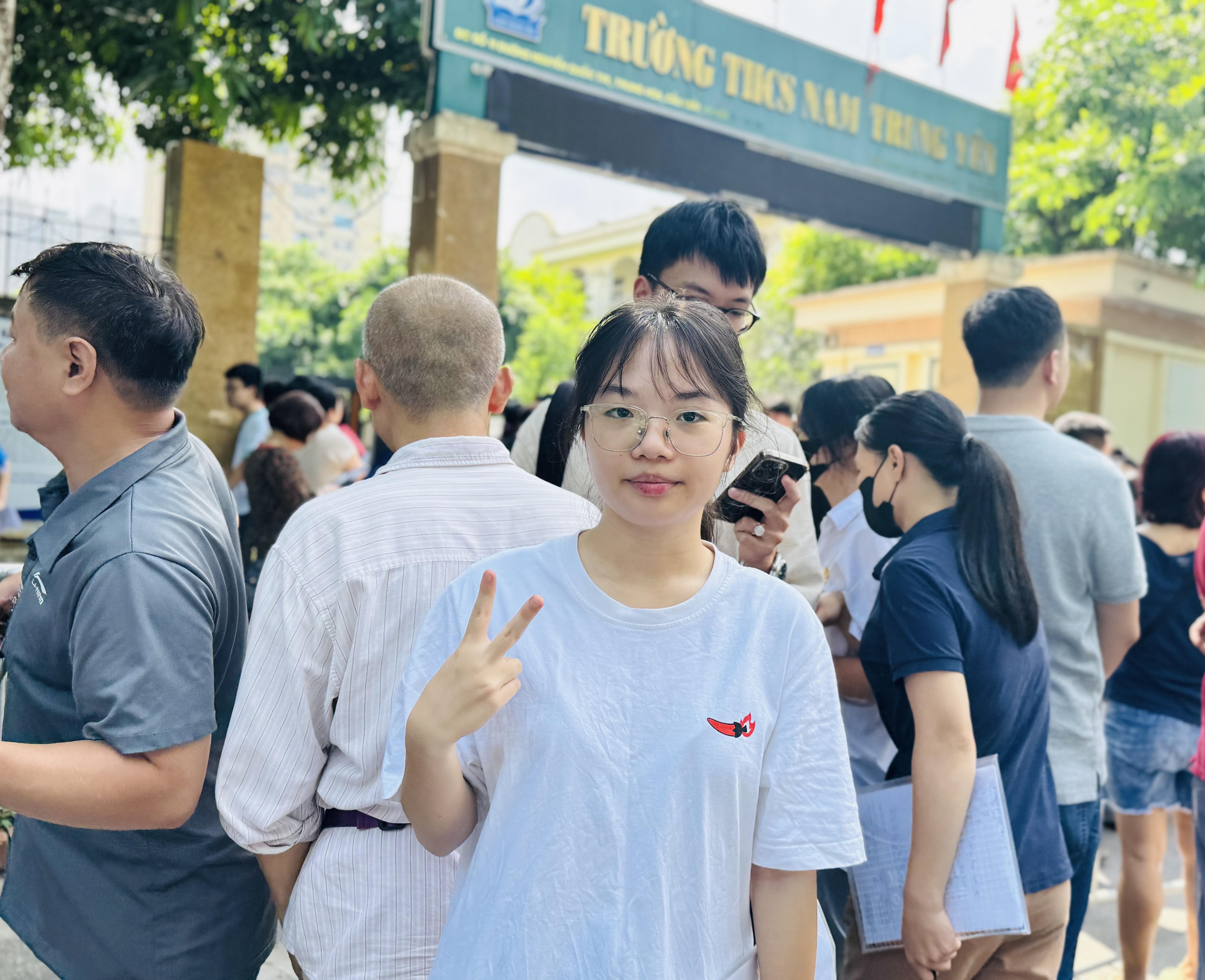 Tại điểm thi Trường THCS Nam Trung Yên (quận Cầu Giấy), Ánh Dương (Trường THPT chuyên Ngoại ngữ) chia sẻ: “Ban đầu khi đọc đề em hơi bất ngờ vì đề rộng và hơi trừu tượng, nhưng khi đọc kỹ thì thấy đề thi hay mà lạ. Em khá thường xuyên xem thời sự ở nhà nên cũng biết nhiều thông tin về việc sáp nhập tỉnh/thành. Thêm vào đó em cũng đã dành nhiều thời gian ôn tập các đề thi tham khảo nên hoàn thành khá tốt bài thi của mình”.