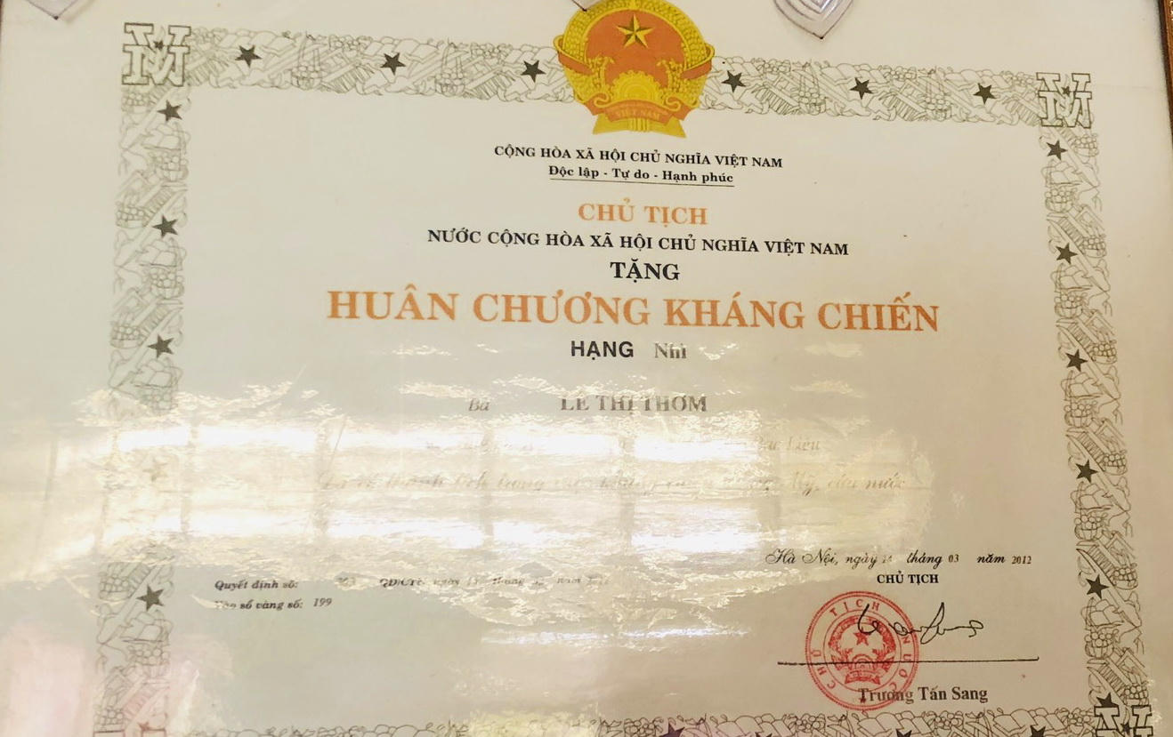 Bà Siêm cho biết thêm: Chồng bà Thơm là liệt sĩ, bà Thơm bệnh nằm một chỗ là do suy sụp khi biết bà Nguyễn Thị Ba và con là Lê Văn Đỏ đứng tên một phần đất trên sổ đỏ mảnh đất của mình.