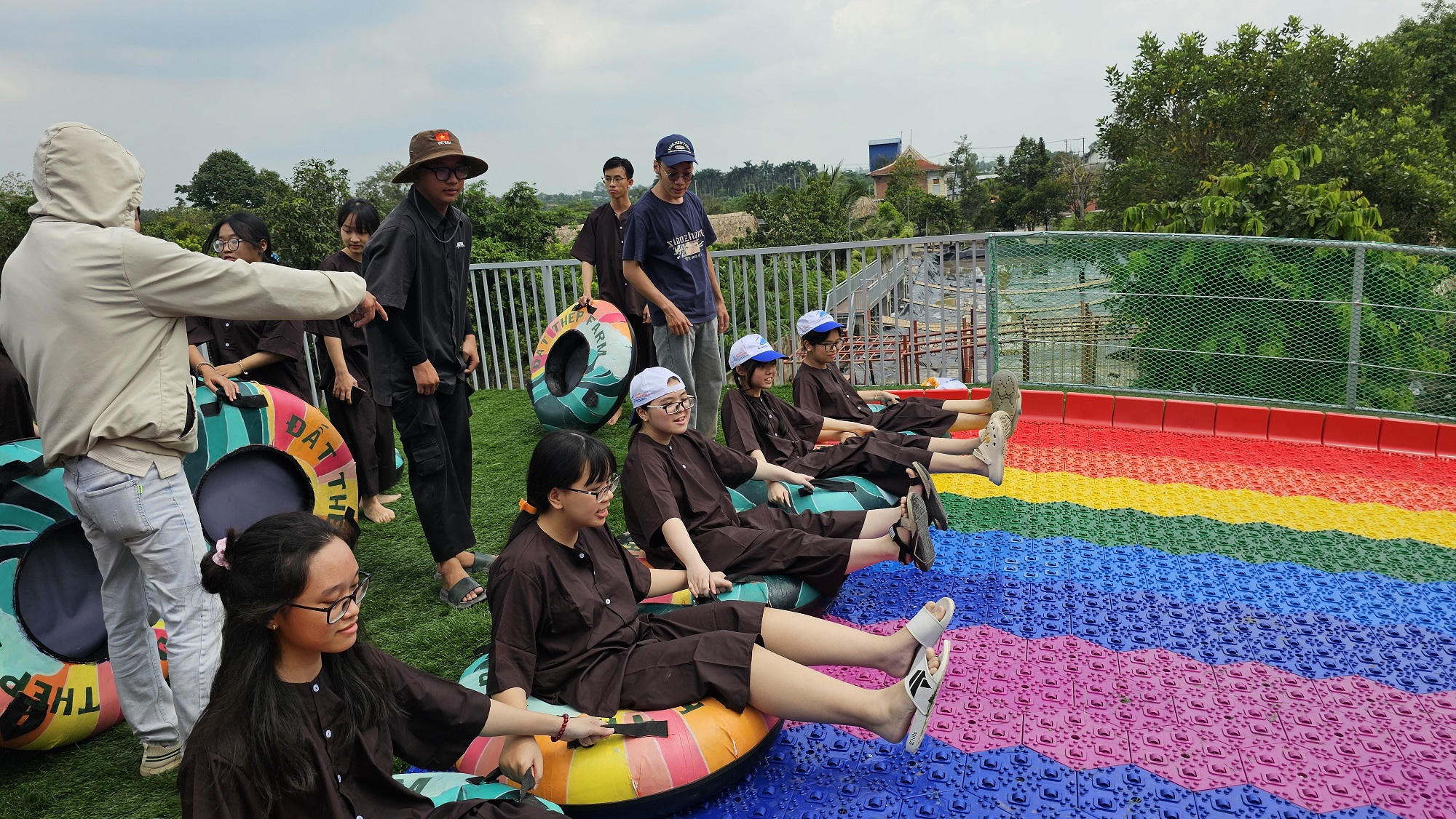 Trượt cầu phao khô tại Đất Thép Farm mang đến những trải nghiệm mới lạ |
