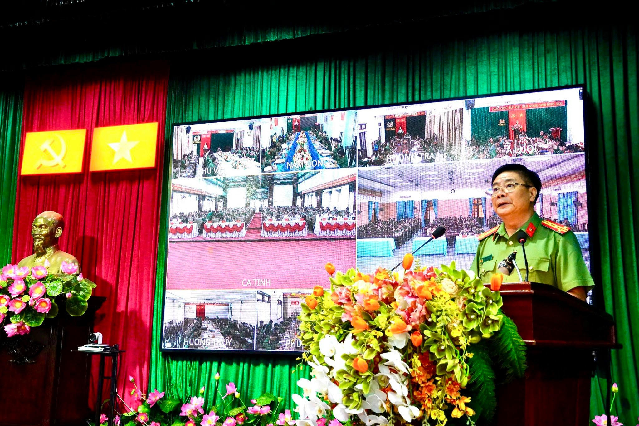 Tham dự Hội nghị trực tiếp và trực tuyến có đại diện chỉ huy Công an các địa phương và hơn 1000 CBCS Công an cấp cơ sở tại 141 phường, xã, thị trấn.