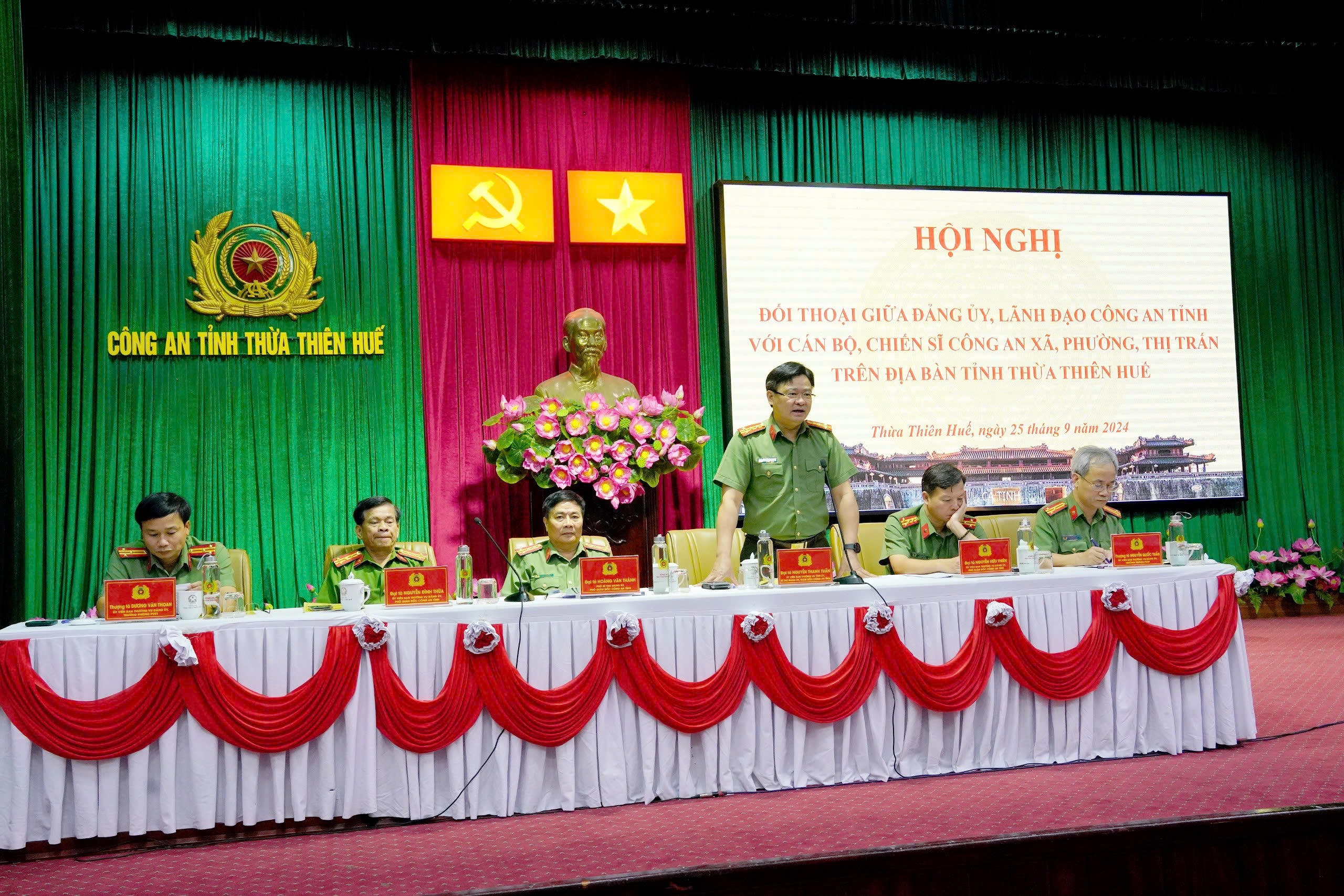 Đại tá Hoàng Văn Thành, Phó Bí thư Đảng ủy, Phó Giám đốc Công an tỉnh Thừa Thiên Huế chủ trì hội nghị. Tham dự hội nghị còn có các đồng chí trong Ban Giám đốc Công an tỉnh và đại diện các Sở, ban, ngành địa phương.