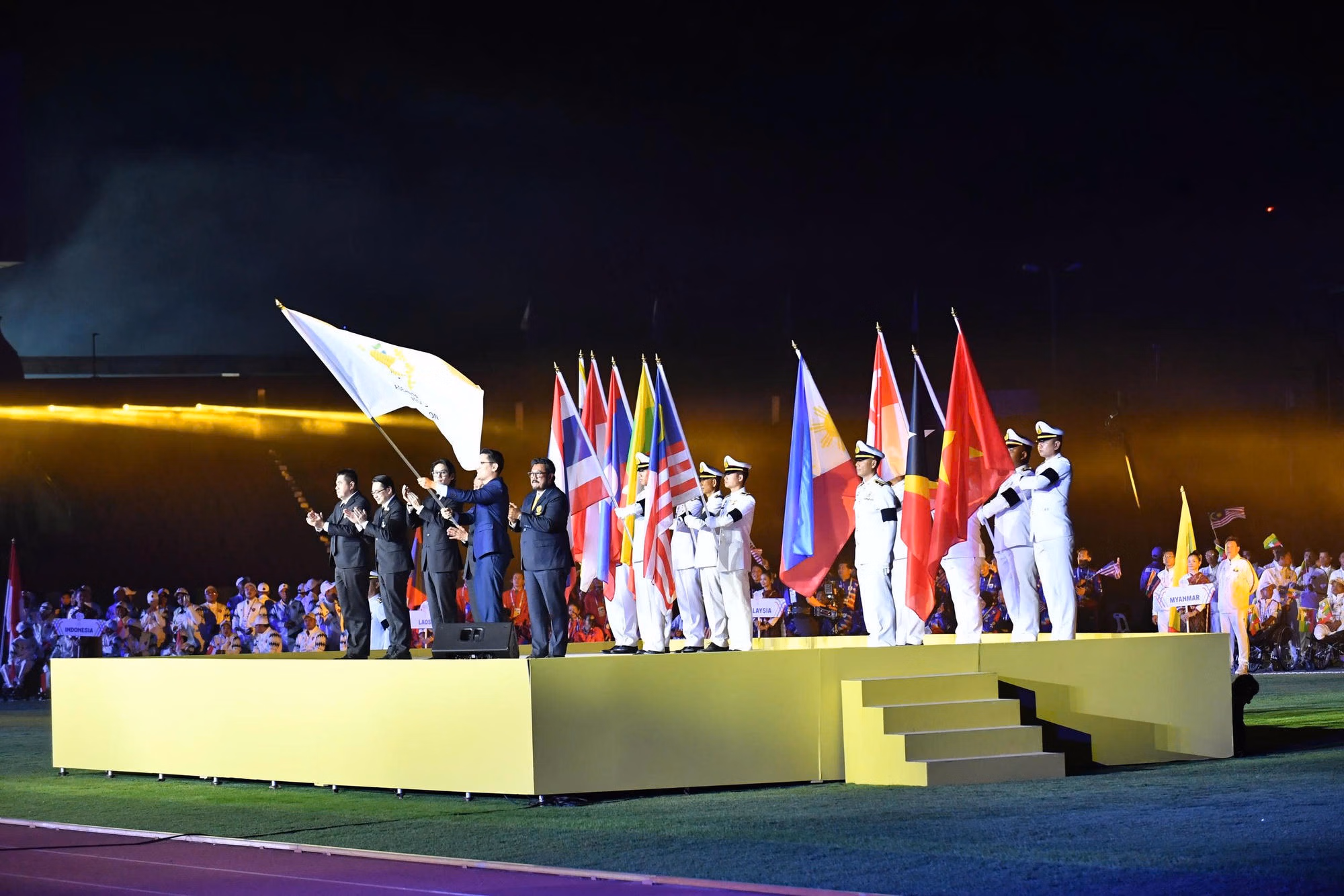 Lễ bế mạc mở màn bằng chương trình diễu hành của 10 Đoàn Thể thao Người khuyết tật đến từ Thái Lan, Việt Nam, Malaysia, Indonesia, Singapore, Philippines, Myanmar, Lào, Timor Leste và Brunei. Đoàn Thể thao Người khuyết tật Việt Nam diễu hành qua sân khấu chính Lễ bế mạc với quốc kỳ cờ đỏ sao vàng, mang theo niềm tự hào sau những ngày thi đấu nỗ lực, cống hiến.