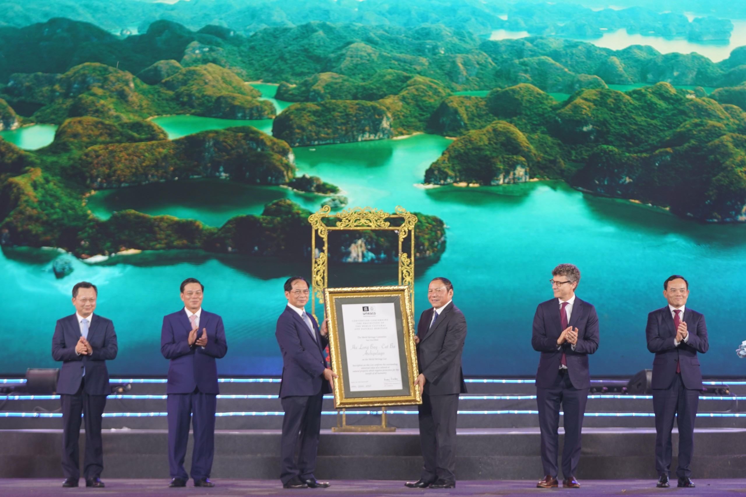 Tại chương trình, đại diện UNESCO đã trao bằng công nhận Vịnh Hạ Long (tỉnh Quảng Ninh) - Quần đảo Cát Bà (thành phố Hải Phòng) là Di sản Thiên nhiên thế giới liên tỉnh - thành phố đầu tiên ở Việt Nam. Đây là thành quả của hơn 12 năm nỗ lực chuẩn bị hồ sơ đệ trình cũng như vận động, bảo vệ, gìn giữ của các cấp, các ngành Trung ương, thành phố Hải Phòng; là minh chứng cho sự liên kết hợp tác giữa 2 địa phương Hải Phòng - Quảng Ninh và sự chung tay của các doanh nghiệp, chính quyền và người dân.