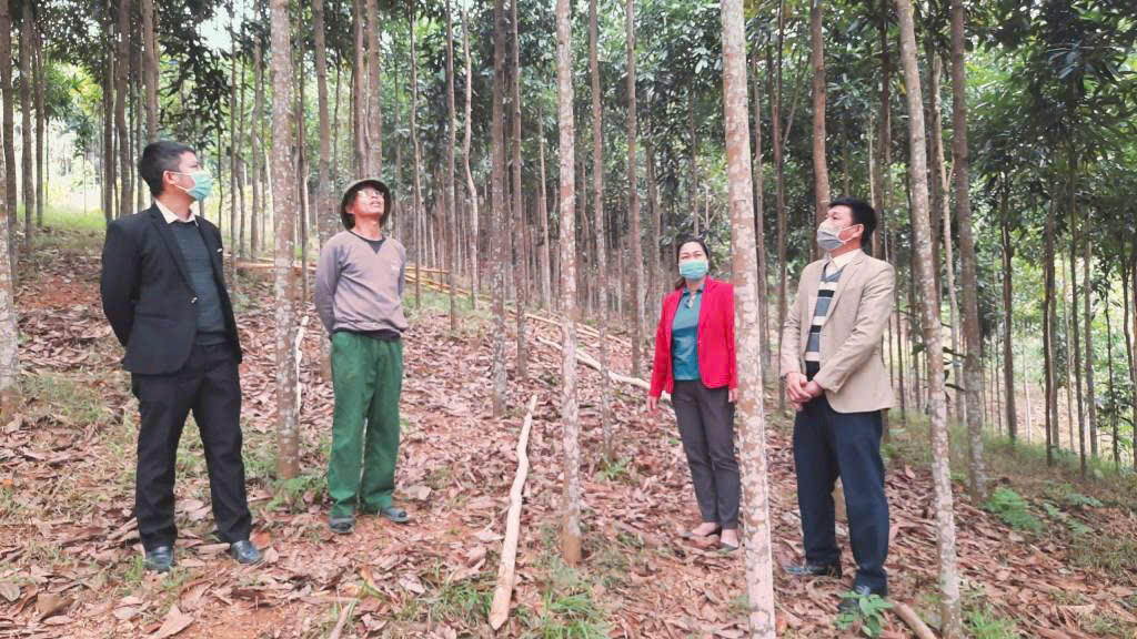 Kế đến là hộ nhà ông Hoàng Văn Nguyên xã Động Quan được NHCSXH cho vay bổ sung 100 triệu đồng thuộc chương trình hộ sản xuất kinh doanh vùng khó khăn để khôi phục sản xuất, trồng mới toàn bộ diện tích cây keo, cây quế bị đổ, gẫy do hoàn lưu cơn bão số 3 hồi tháng 9/2024 gây ra. Xuân mới về, rừng cây của gia đình ông Nguyên cũng xanh tốt lại, hứa hẹn cuộc sống ổn định, tươi sáng thêm.