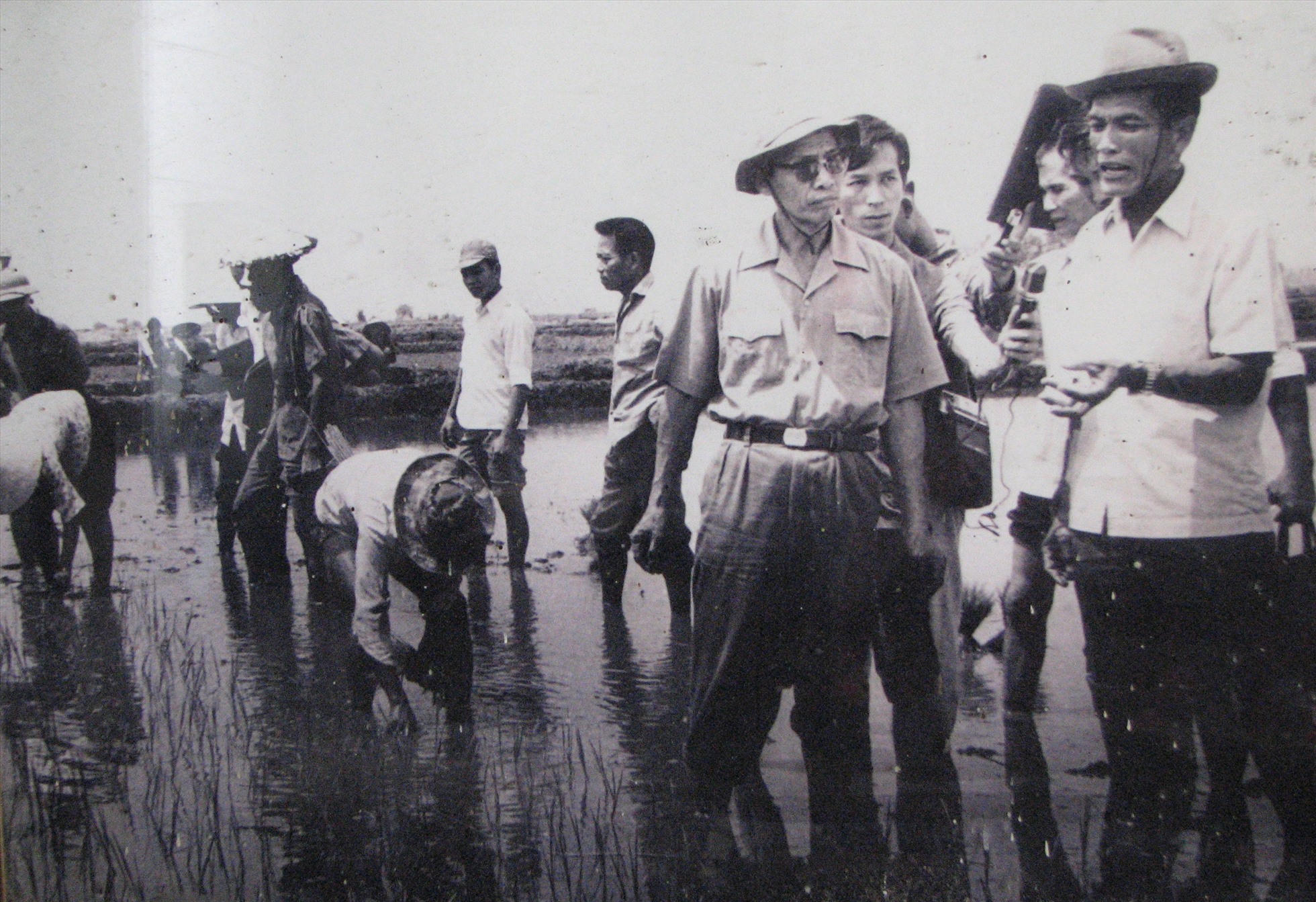 Thủ tướng Võ Văn Kiệt (đeo kính) trong một lần thăm nông dân cấy lúa. Ảnh tư liệu. |