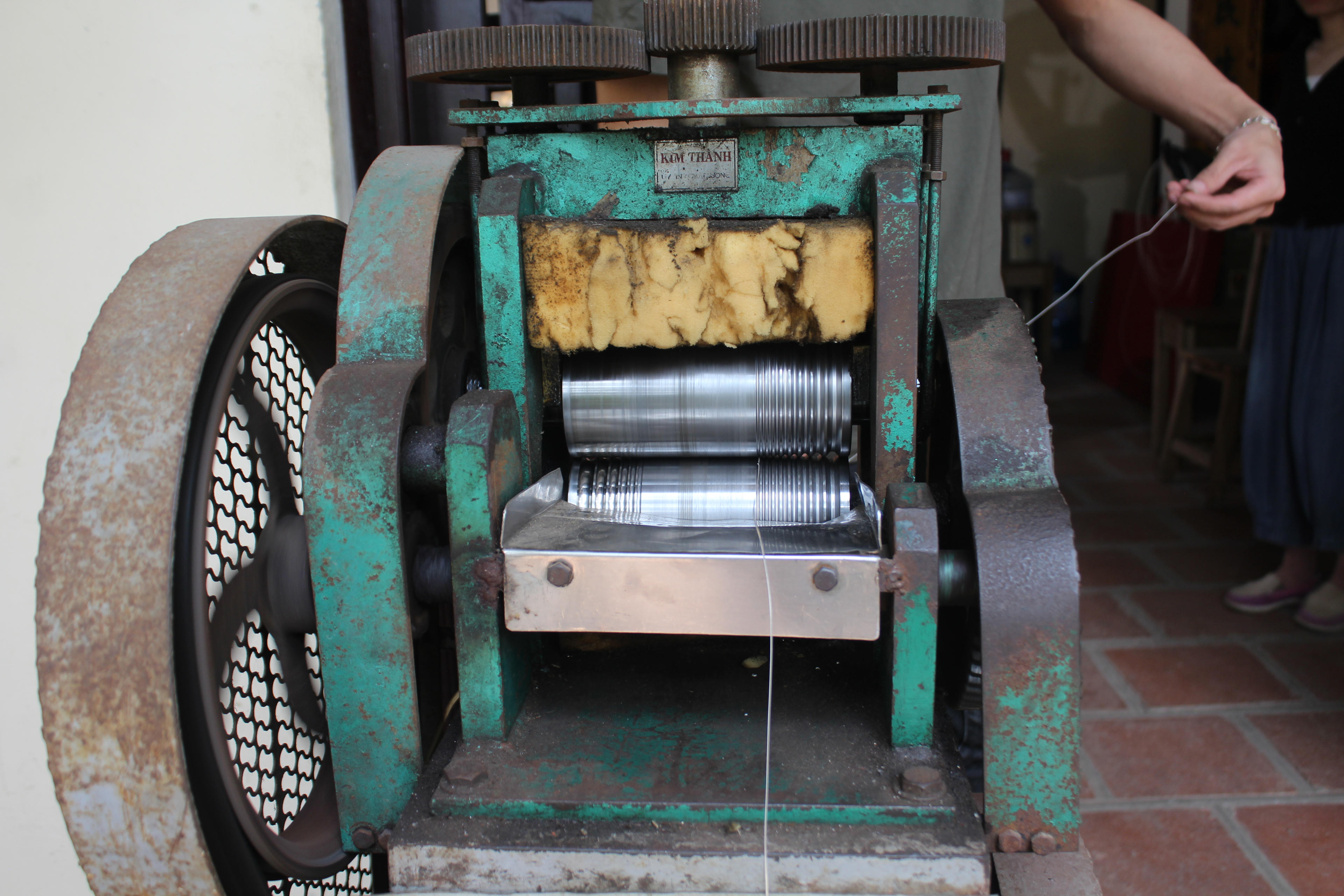 Từ hai sợi chỉ tròn cán dẹt vào nhau thành sợi mỏng gọi là chỉ se, sau đó đem đi nướng cho mềm để thành các sợi chỉ mỏng dùng để tạo sản phẩm. |