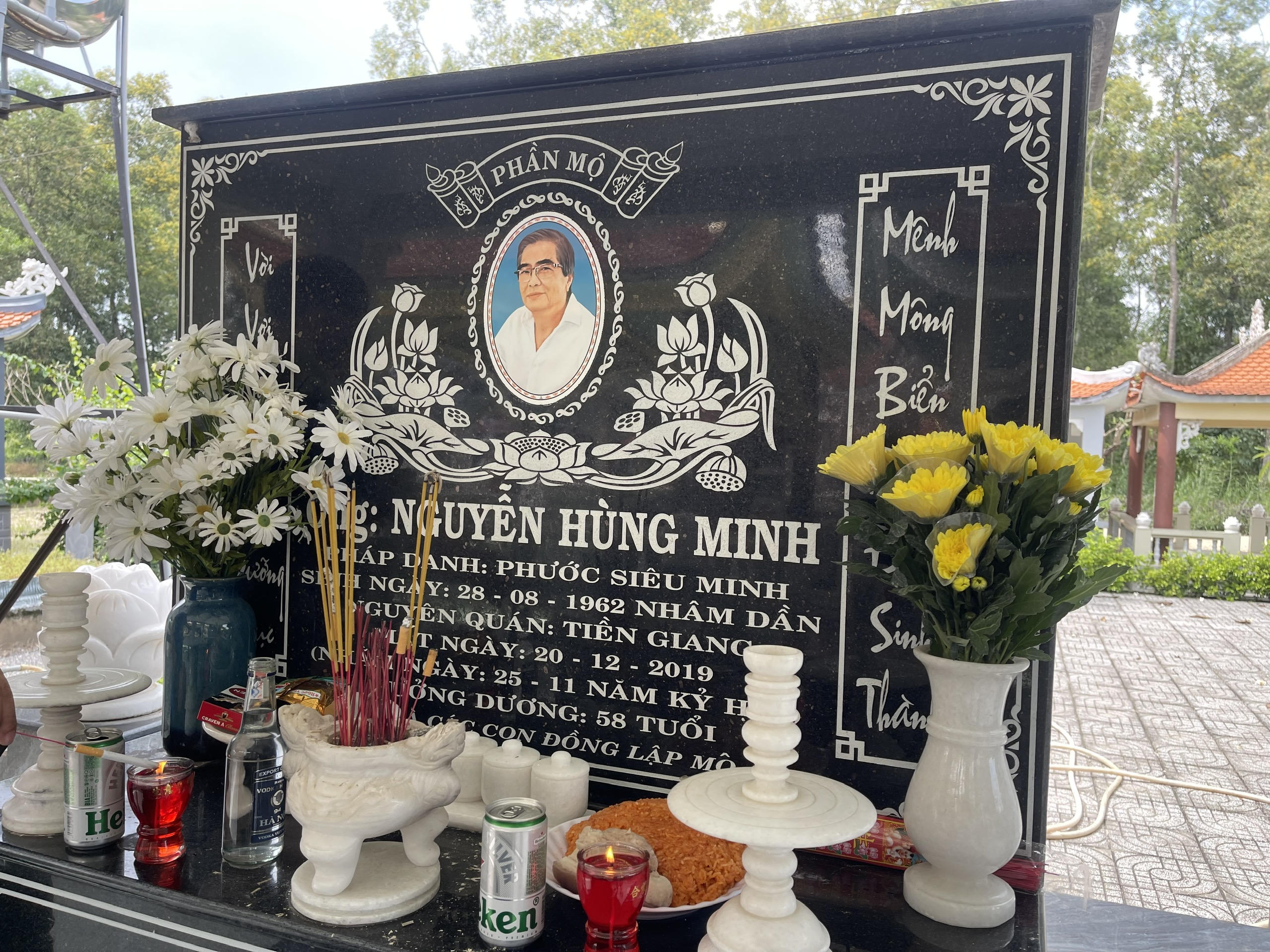 Mộ ông Minh ở Tu viện Phước Hoa (xã Phước Thái, huyện Long Thành, tỉnh Đồng Nai), bia mộ ghi rõ “Mất ngày 20/12/2019 (nhằm ngày 25/11 năm Kỷ Hợi), hưởng dương 58 tuổi”.