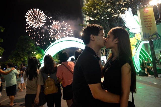 Thời khắc chuyển giao 2015 sang 2016, hàng ngàn người trên các tuyến phố trung tâm Hà Nội, Đà Nẵng, TP HCM vỡ òa hạnh phúc. Tình yêu ngập tràn với những nụ hôn bất ngờ của các cặp tình nhân Việt và nhanh chóng lan sang du khách ngoại. Năm mới đến hứa hẹn nhiều niềm vui mới, thành công mới...