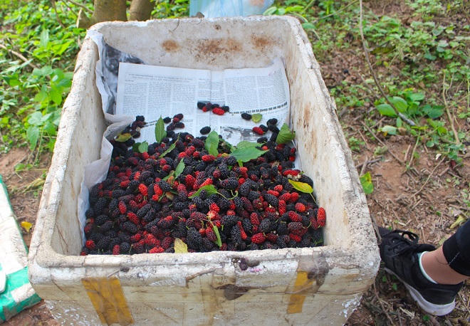 Tùy vào số lượng dâu tằm mà thương lái sẽ đến tận vườn trồng để thu mua. Ngoài cung cấp cho nội thành, quả dâu tằm còn được chuyển vào thị trường miền nam.